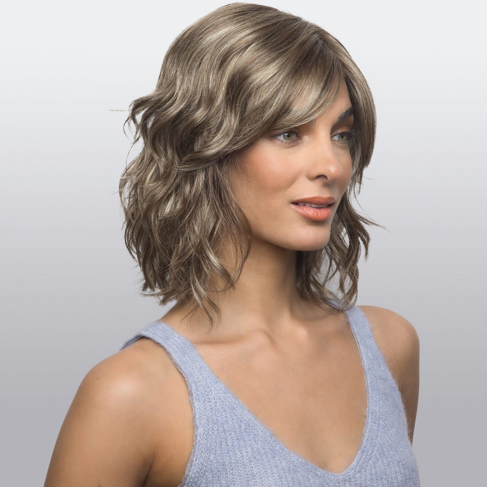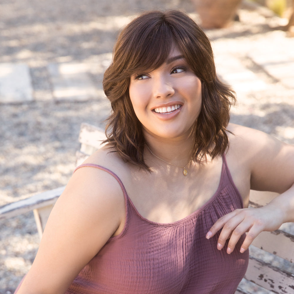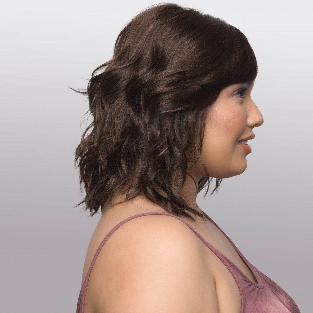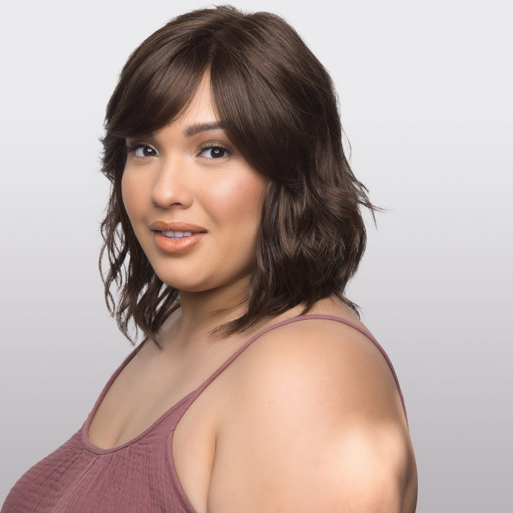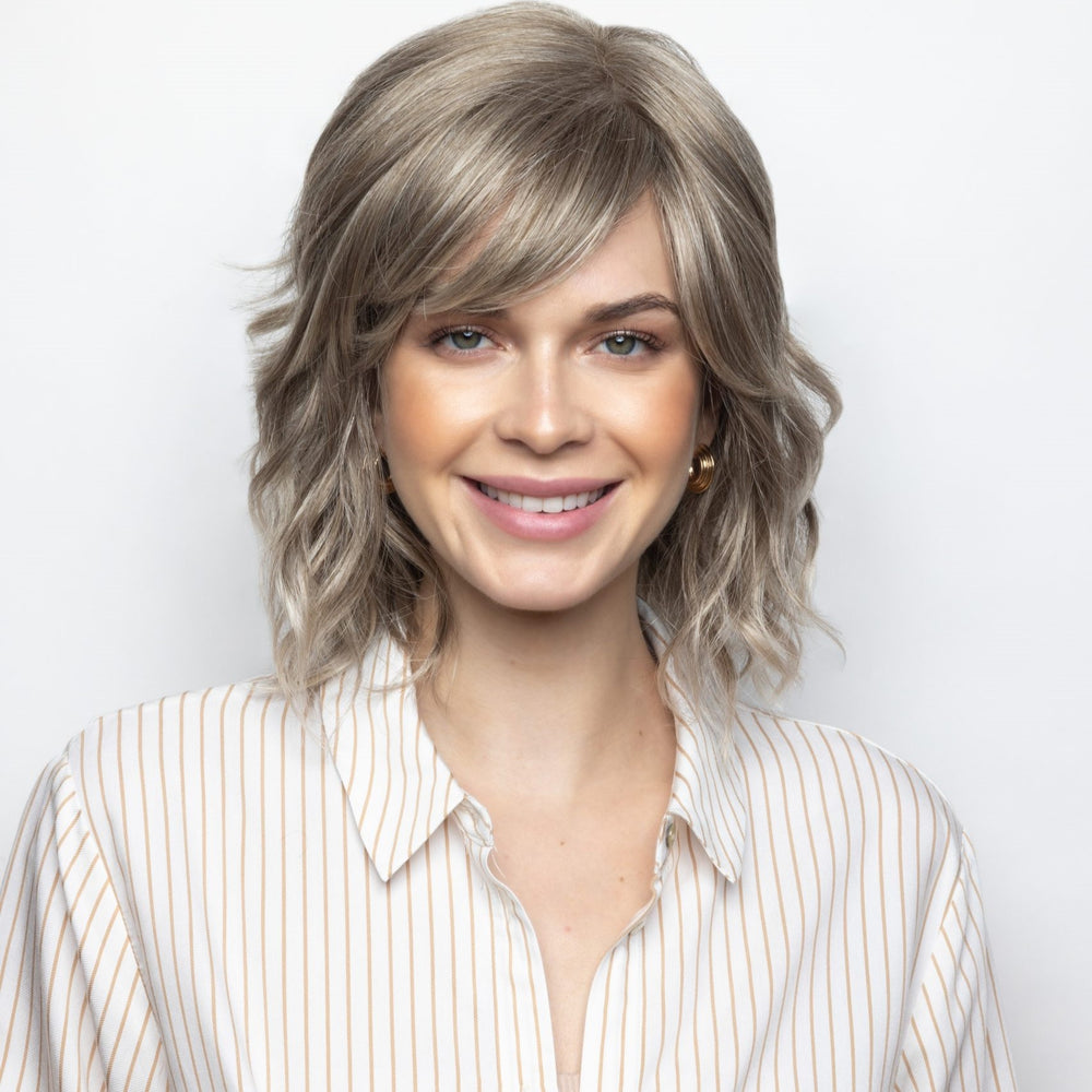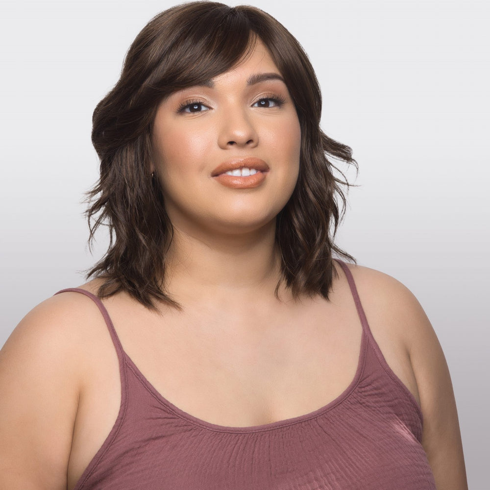 Braylen from our Amore Collection is a mid-length synthetic wig. This wavy ready-to-wear wig is a fun and playful wig with medium density. If you are looking for that beachy wavy curl pattern with fringe this is the wig for you. Our Braylen cap construction is Double Monofilament and lace front. Its Double Monofilament cap construction is combined with calibrated machine wefting along the sides and back. Braylen cap includes polyurethane tape tabs along the front and adjustable tabs in the back neck area, to allow for comfortable fit. The result is a comfortable fit with a natural look that is both fashionable and easy to wear.