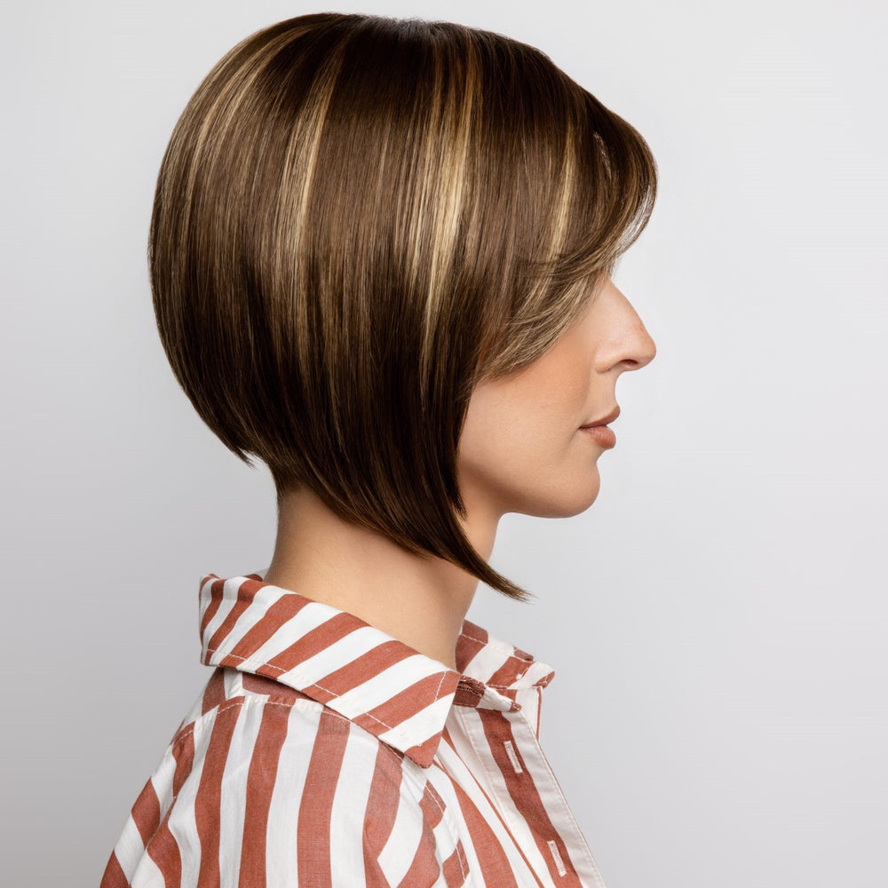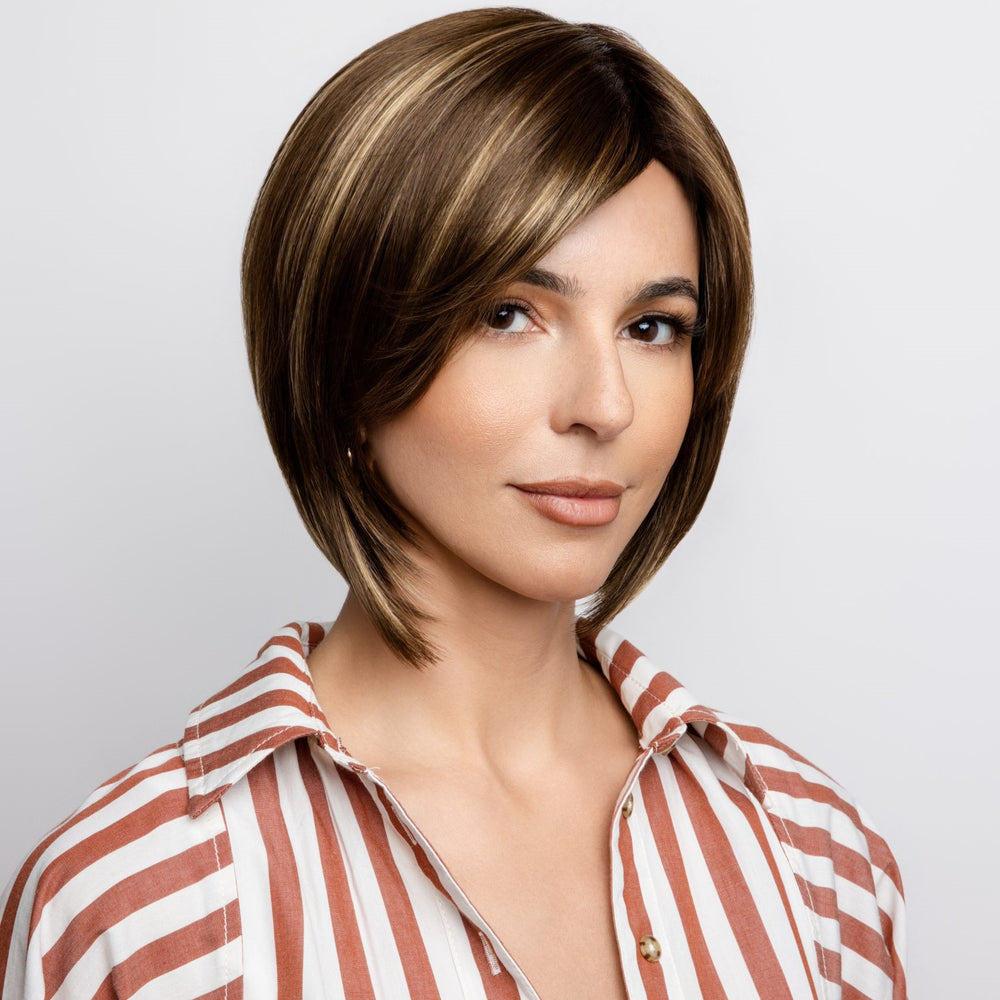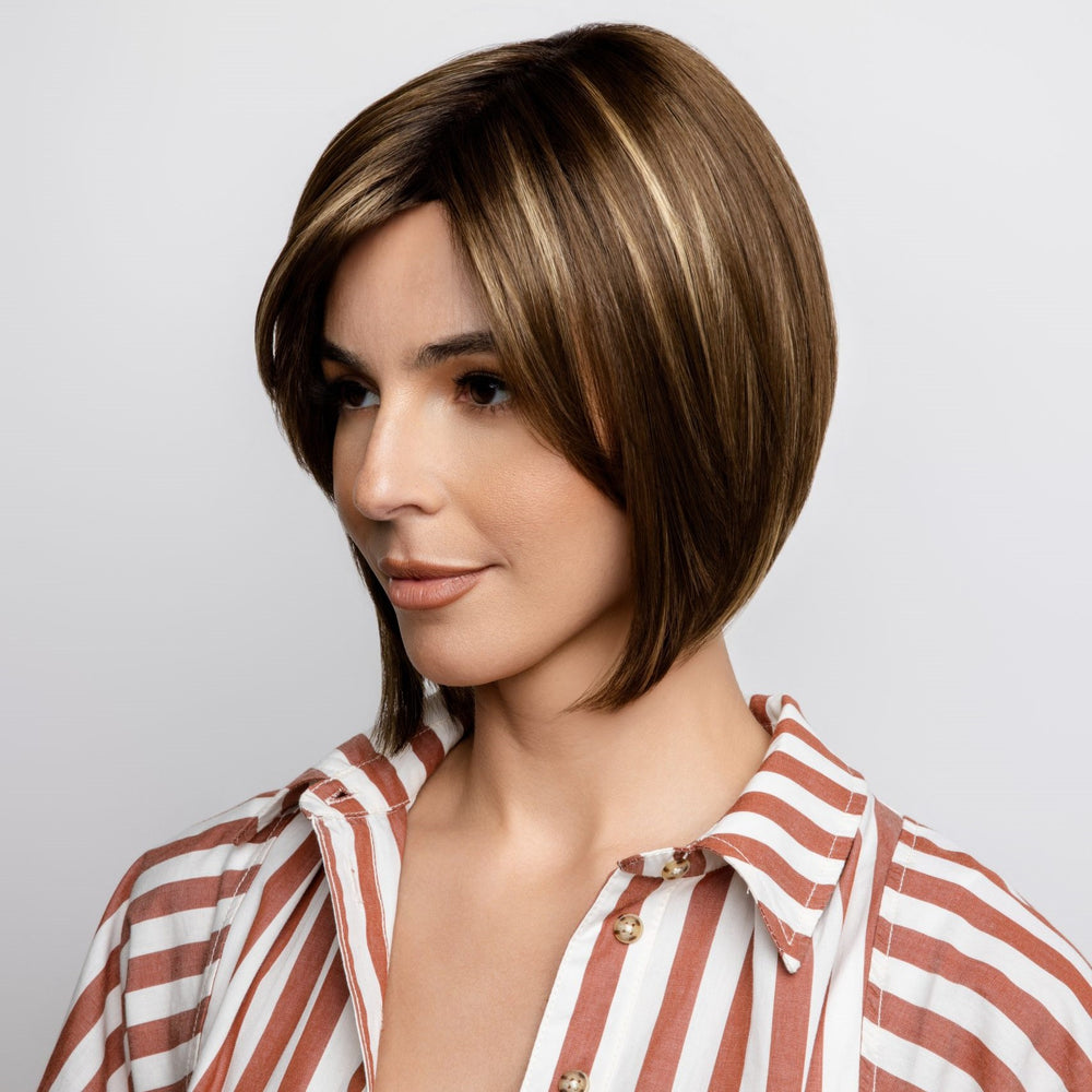 Codi from our Amore Collection is a short synthetic wig. This straight angled bob ready-to-wear wig is an angled bob with side swept fringe to create a simply beautiful look. It's Double Monofilament cap construction is combined with calibrated machine wefting along the sides and back. Codi cap includes polyurethane tape tabs along the front and adjustable tabs in the back neck area, to allow for comfortable fit. The result is a comfortable fit with a natural look that is both fashionable and easy to wear. Also available in Codi XO cap.