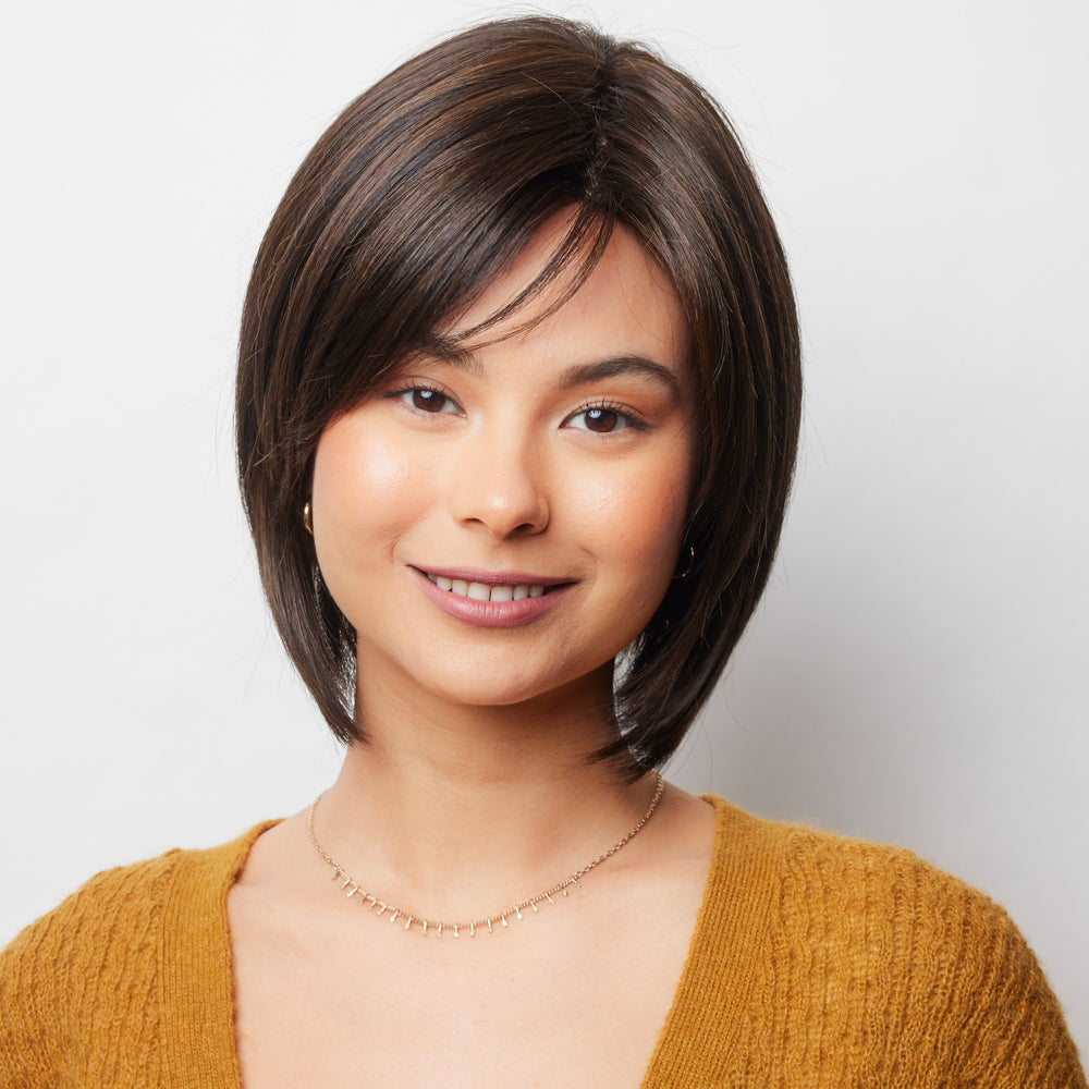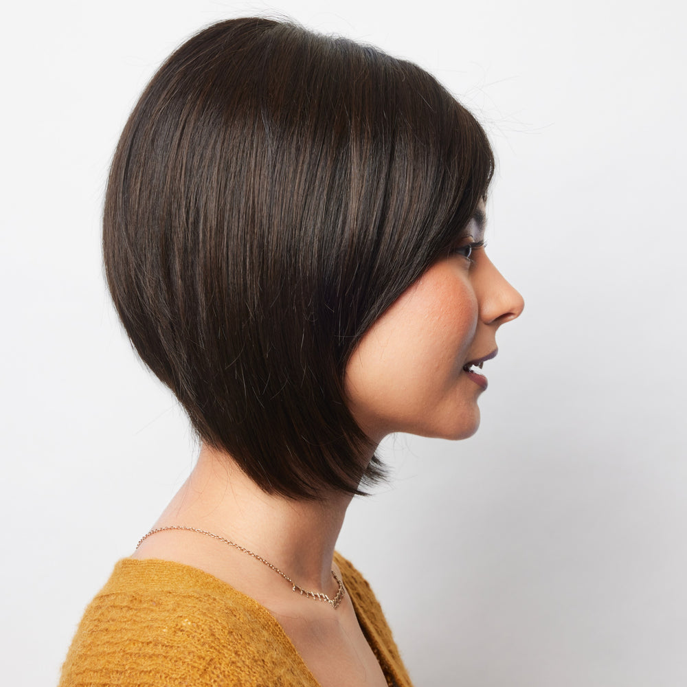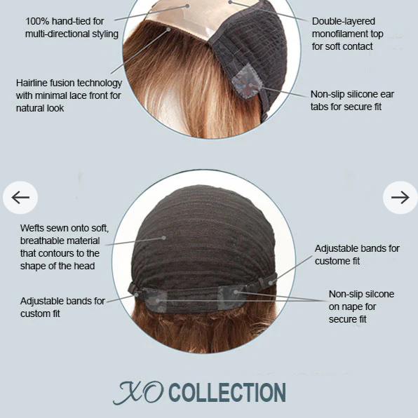 Codi XO from our Amore XO Collection is our Codi in our Amore Collection but now available in a new cap. Codi XO is a short synthetic wig. This straight angled bob ready-to-wear wig is an angled bob with side swept fringe to create a simply beautiful look. Our Codi XO cap construction is 100% hand-tied, double monofilament, and lace front. Hand-tied, creates multi-directional styling. The lace front is a hairline fusion technology with minimal lace front for natural look. Its Double Monofilament cap construction is combined with calibrated machine wefting along the sides and back. Codi XO cap includes polyurethane tape tabs along the front and adjustable tabs in the back neck area, to allow for comfortable fit. The result is a comfortable fit with a natural look that is both fashionable and easy to wear.