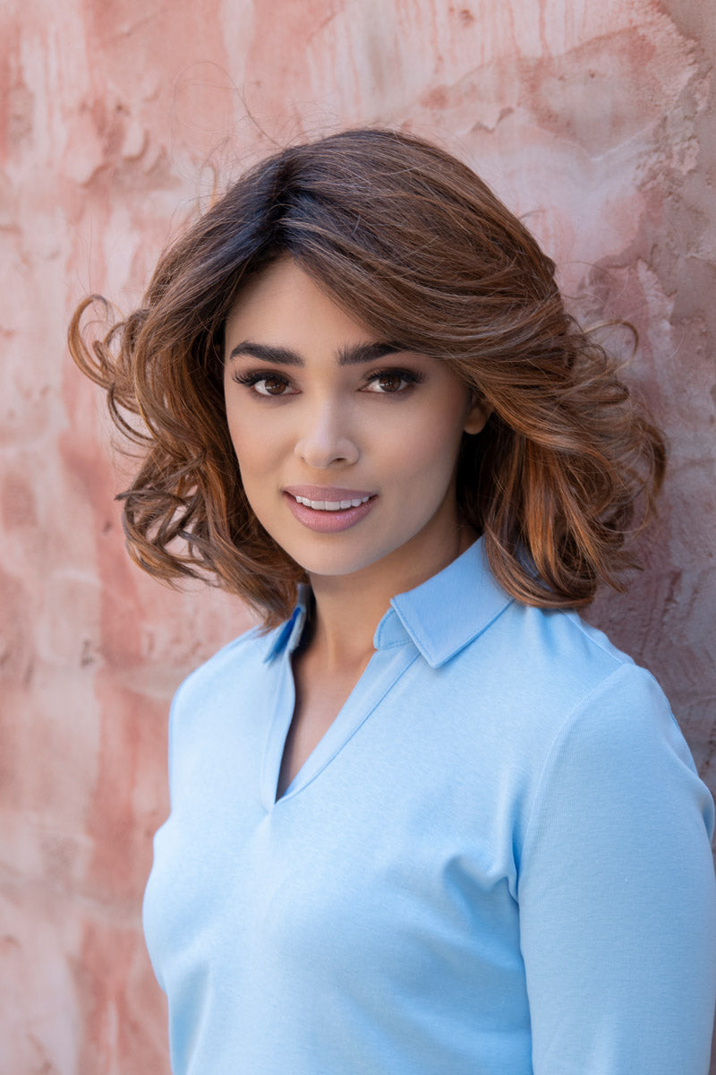 Brittaney by Envy offers elegant shouler length beach wavesd for movie star gamo into even the most humdrum of days. Soft layered and tossled curls enhance this lace front mono top construted style.