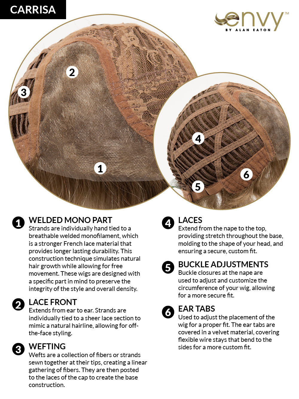 Add a heaping helping of sass and fun to your look with Carrisa. Carefree curls captivate and charm while the tousled look keeps you feeling fresh and young. You'll tumble head over heels in love with the Lace Front Mono Part construction and soft breathable cap that fits securely enough for head tossing galore.