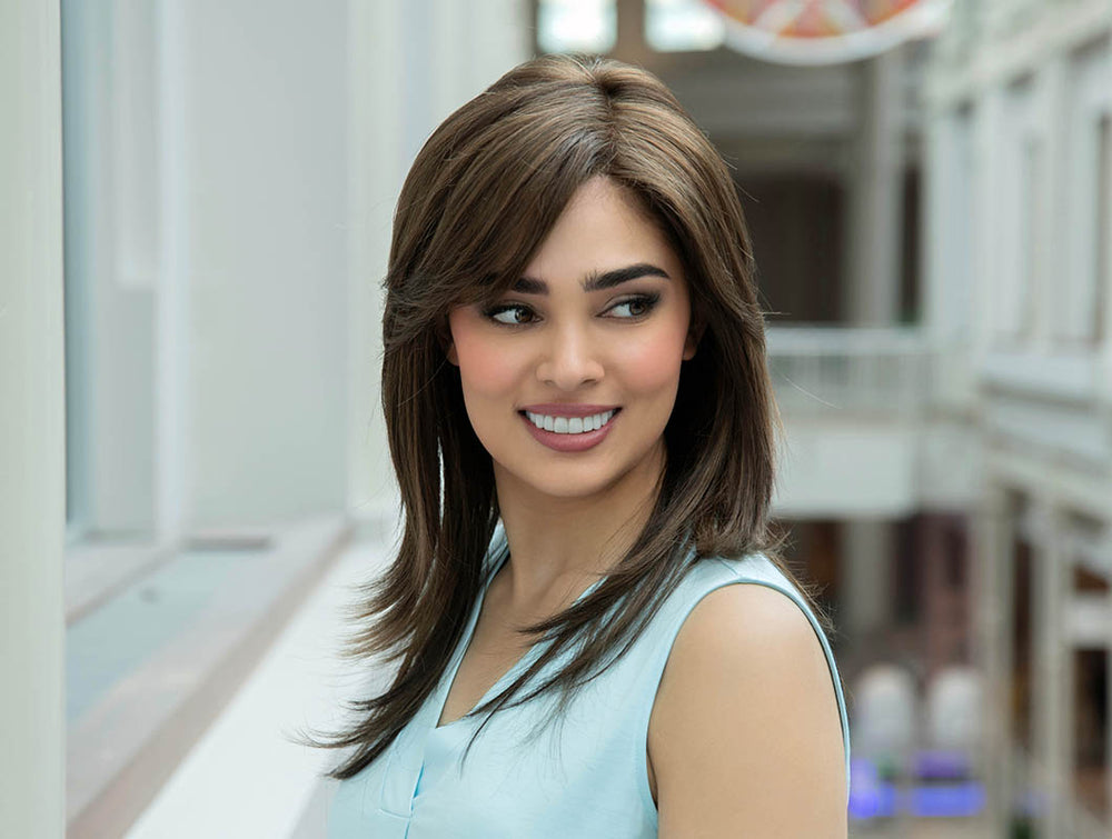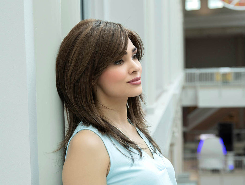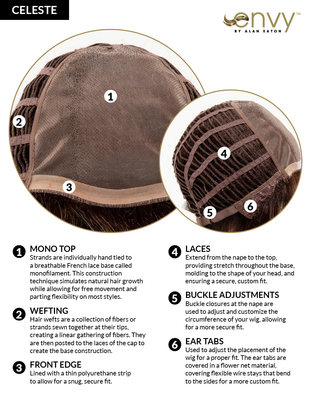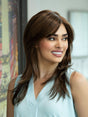 Celeste by Envy offers our Mono Top construction on this Long Layered face framing bombshell. Layers upon layers create trendy tresses that can be combed with side wept bangs or towards the face for that bombshell bangs styling and appearance. Available in 25 fashion forward colorations by Envy.