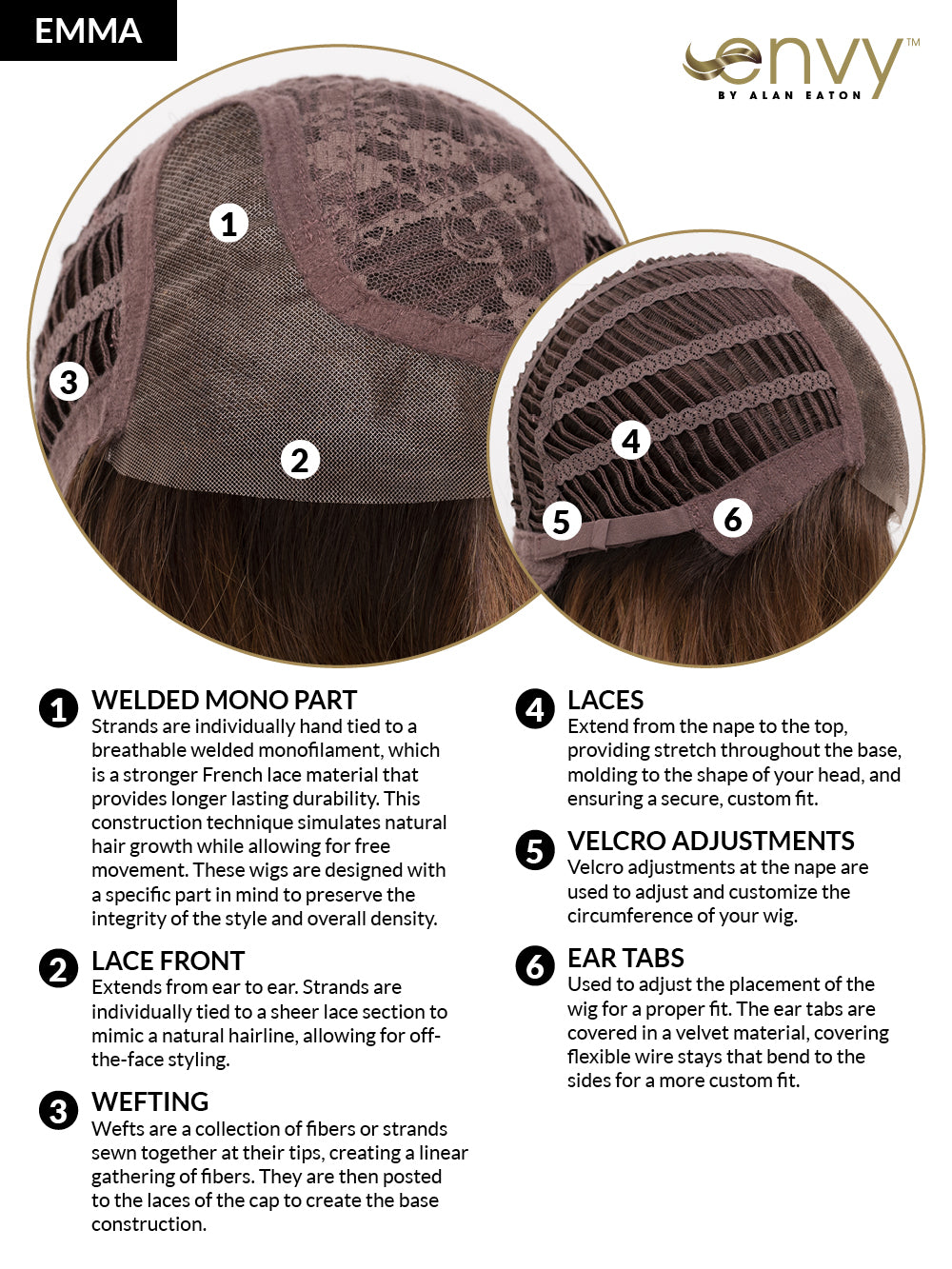 The soft, face-framing waves of Emma’s textured “lob” (longer bob) are the epitome of nontraditional chic. Roll with her natural waves, or get our your flat iron and wear her straight and sleek—our proprietary EnvyHair human hair blend allows you to heat style to your heart’s content!