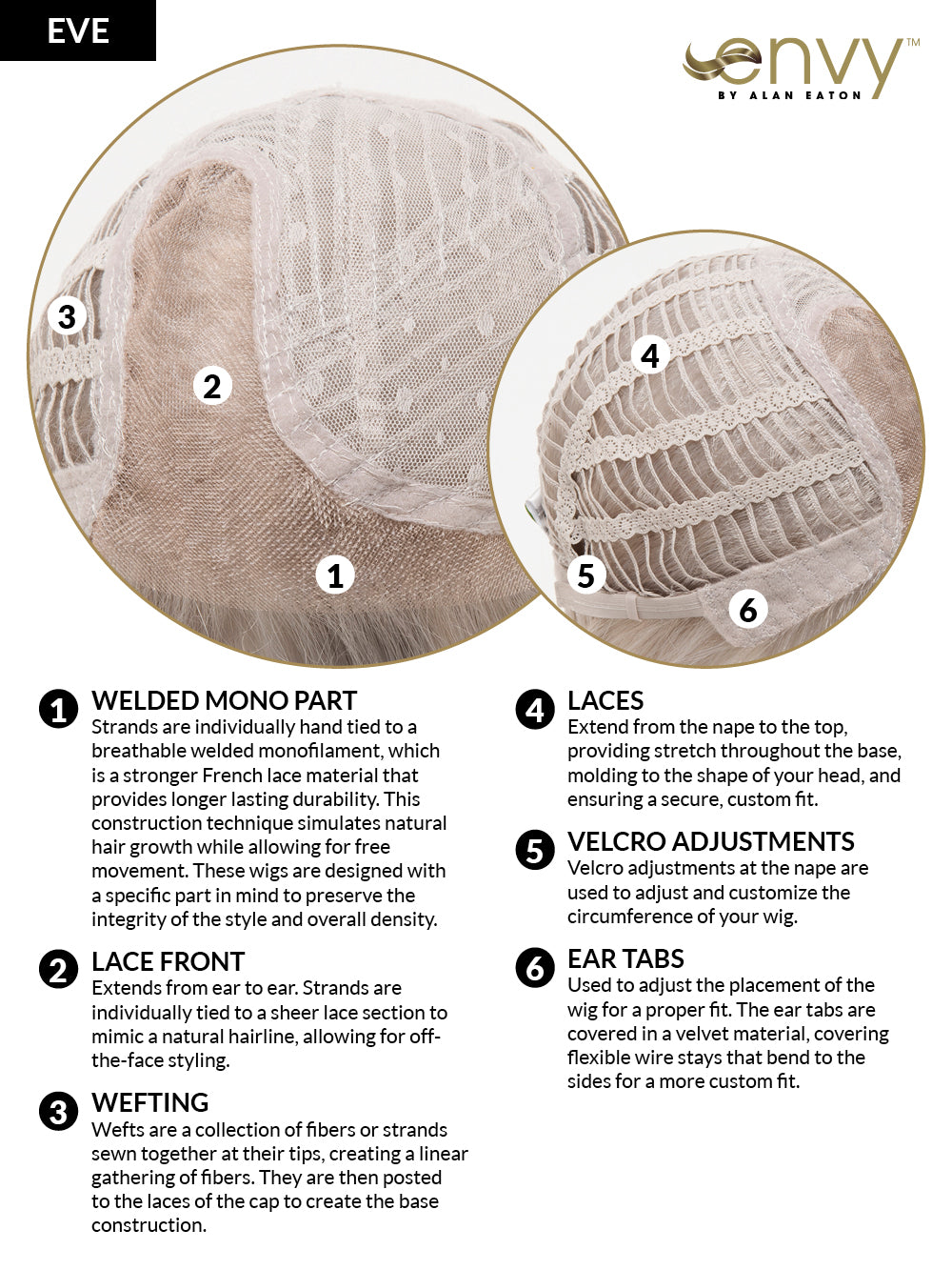 Nothing says sophistication quite like a classic bob. Eve's sleek, timeless silhouette is sure to turn heads, while her Lace Front Mono Part construction offers one of the most believable hairlines on the market.