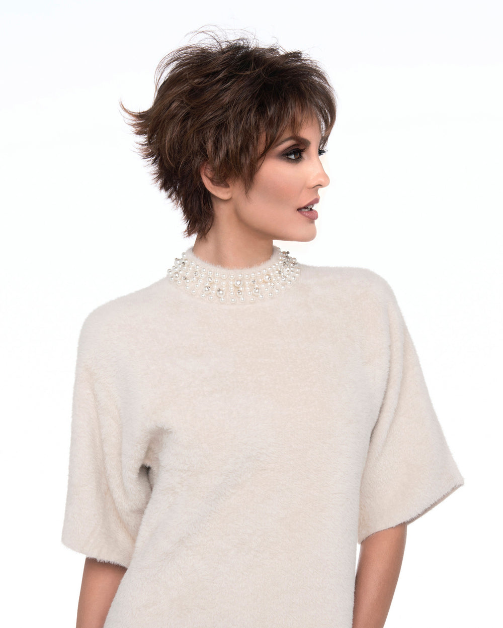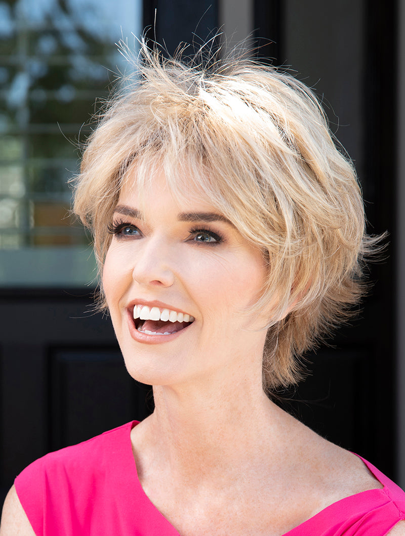Sometimes a name just says it all. Flame's artfully teased and tousled 'do is lively as fire and cool as ice. The capless construction allows you to bump up the volume or slick it down, depending on your mood, and the remarkable qualities of our Envyhair heat-friendly blend gives you endless styling options. When making an immediate impact is your mission, Flame belongs to you.
