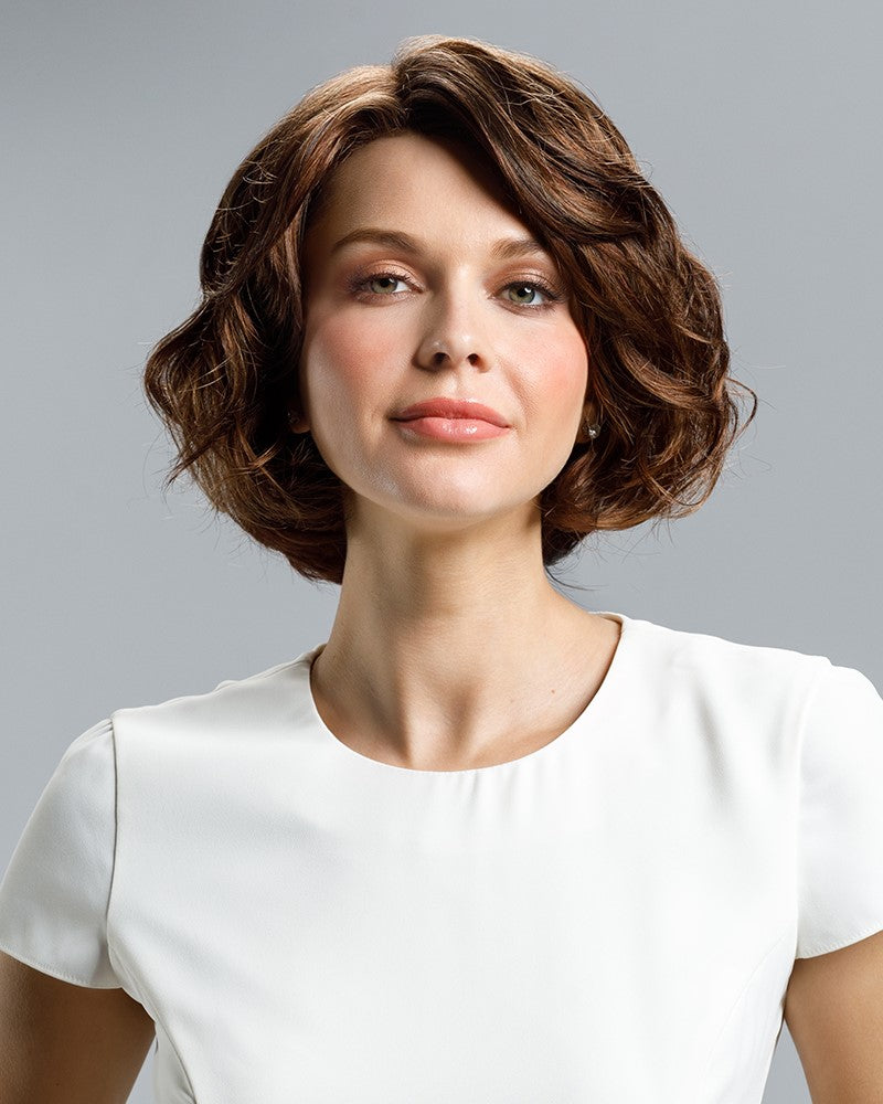 Gia Mono is a sophisticated creation inspired by Envy's best-selling bob style, Gia. Boasting Envy's new SoSoft cap design with and offering varying light-medium density, this medium style exudes effortless elegance with loose, carefree waves. The meticulously crafted lace front and monofilament construction allow the hair to be effortlessly parted in any direction, creating a remarkably natural look.