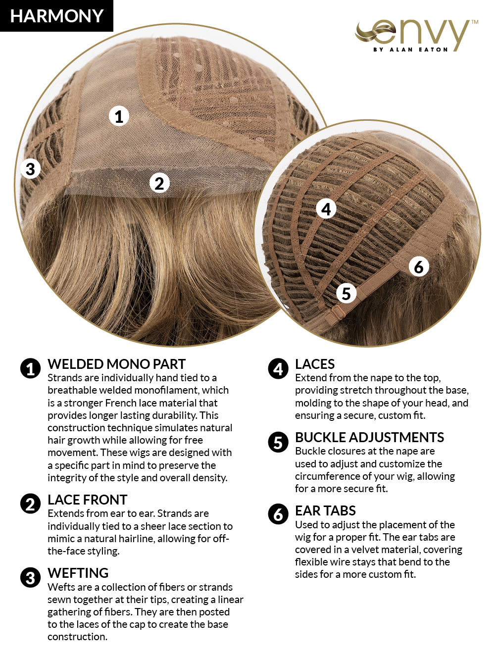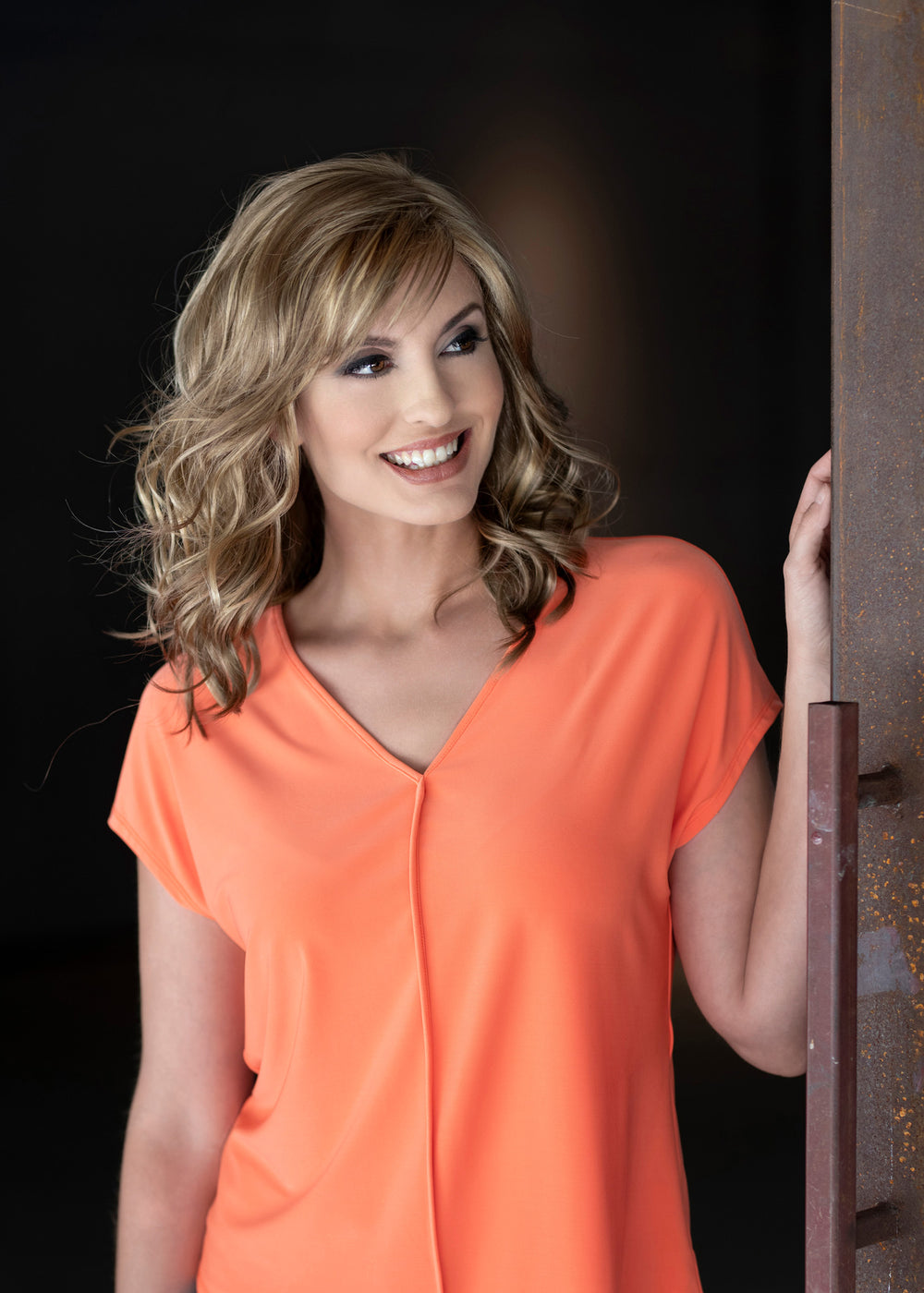 Harmony’s textured, flowing waves were meant to be tossed…. Our Lace Front Mono Part construction gives you those wispy bits at the hairline and one of the most realistic-looking parts on the market. This gal will never give away the secret that you’re wearing a wig.