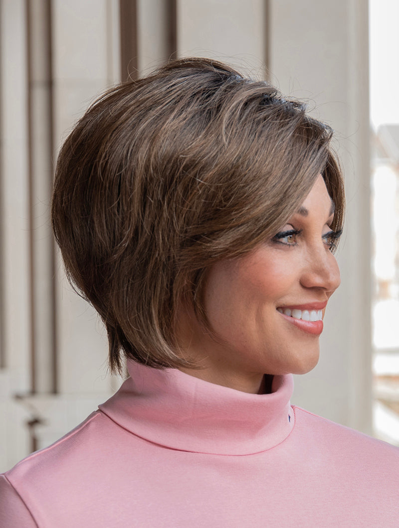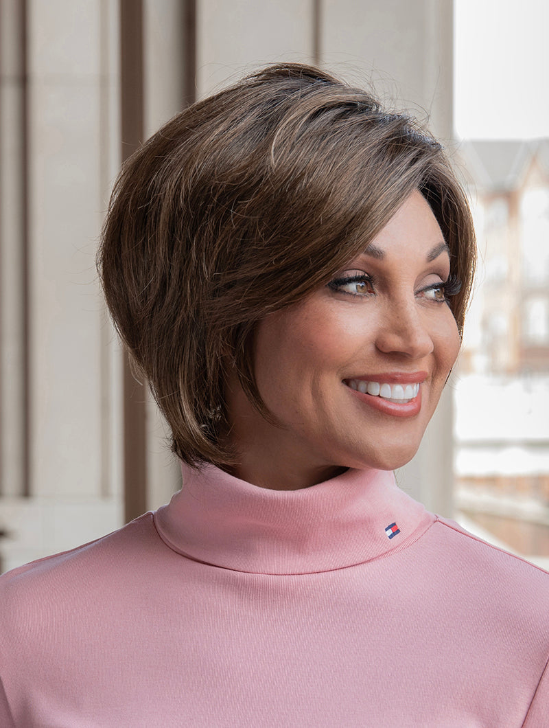 A night on the town or a day in the office, Juliet has your schedule covered with soft, mid-length layers that fall beautifully to flatter and frame your best features. Her Lace Front Mono Part construction means you'll have wispy, natural edges and a flawless part no matter how you style or how many times you run your fingers through your tresses.