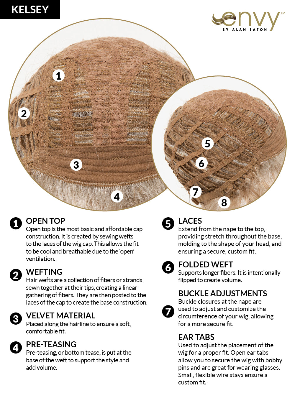 As if the assymetric, angled styling didn't add enough drama to this fashion-forward bob, Kelsey's long, lustrous curls make this wig a true show stopper. As part of our Open Top collection, you can be sure Kelsey offers the maximum in stylish and versatile comfort.