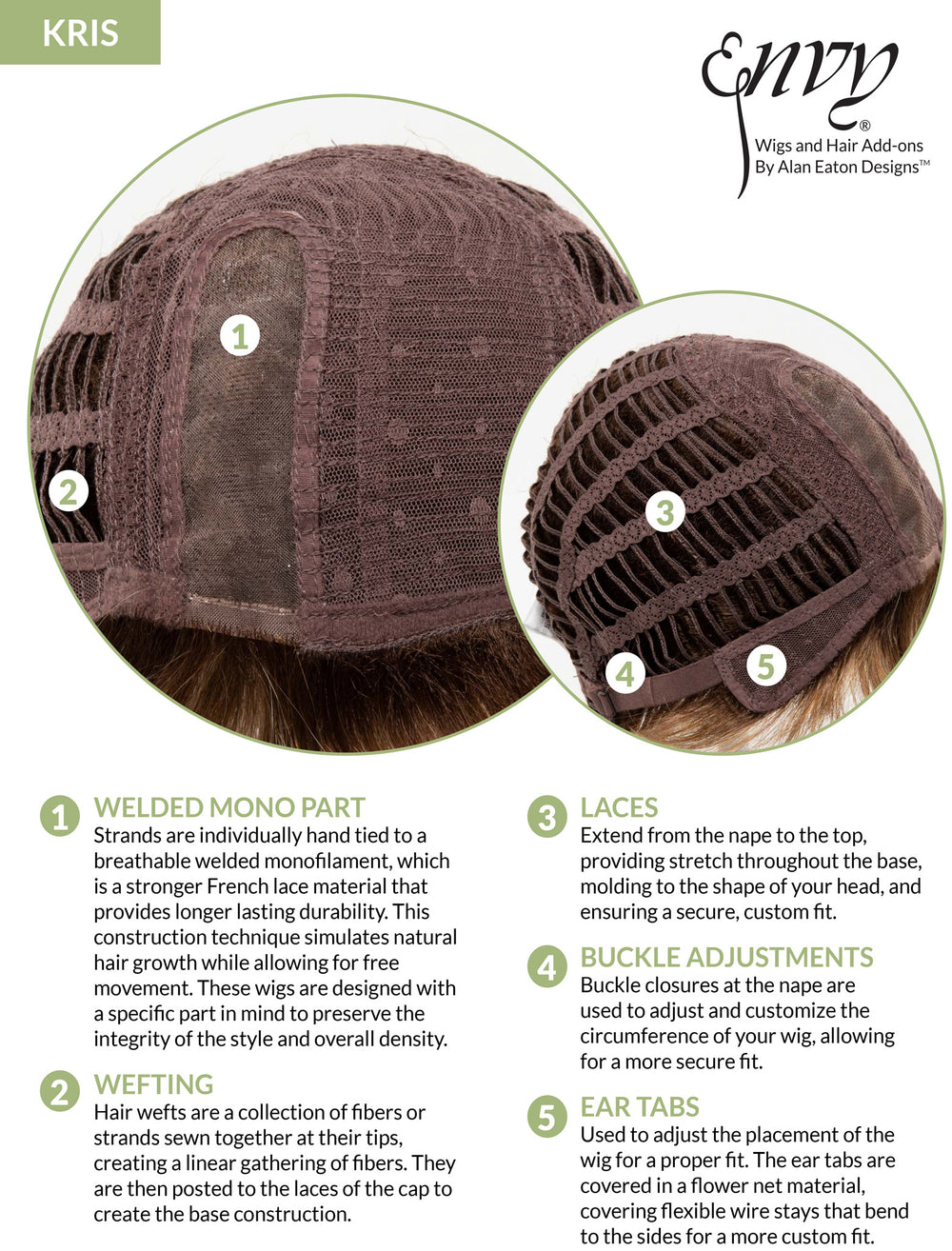 Kris by Envy offers a hand tied mono part construction for the most natural in realistic styling. Kris has been designed to offer chic pixie styling at its best. The long bangs are side swept offering a flirty retro feel while being manageable and sophisticate. Perfect for all ages and suitable for the novice wig wearer with its ease of styling. Kris is available in 25 vibrant multi-dimensional colorations to fit the trends of today.