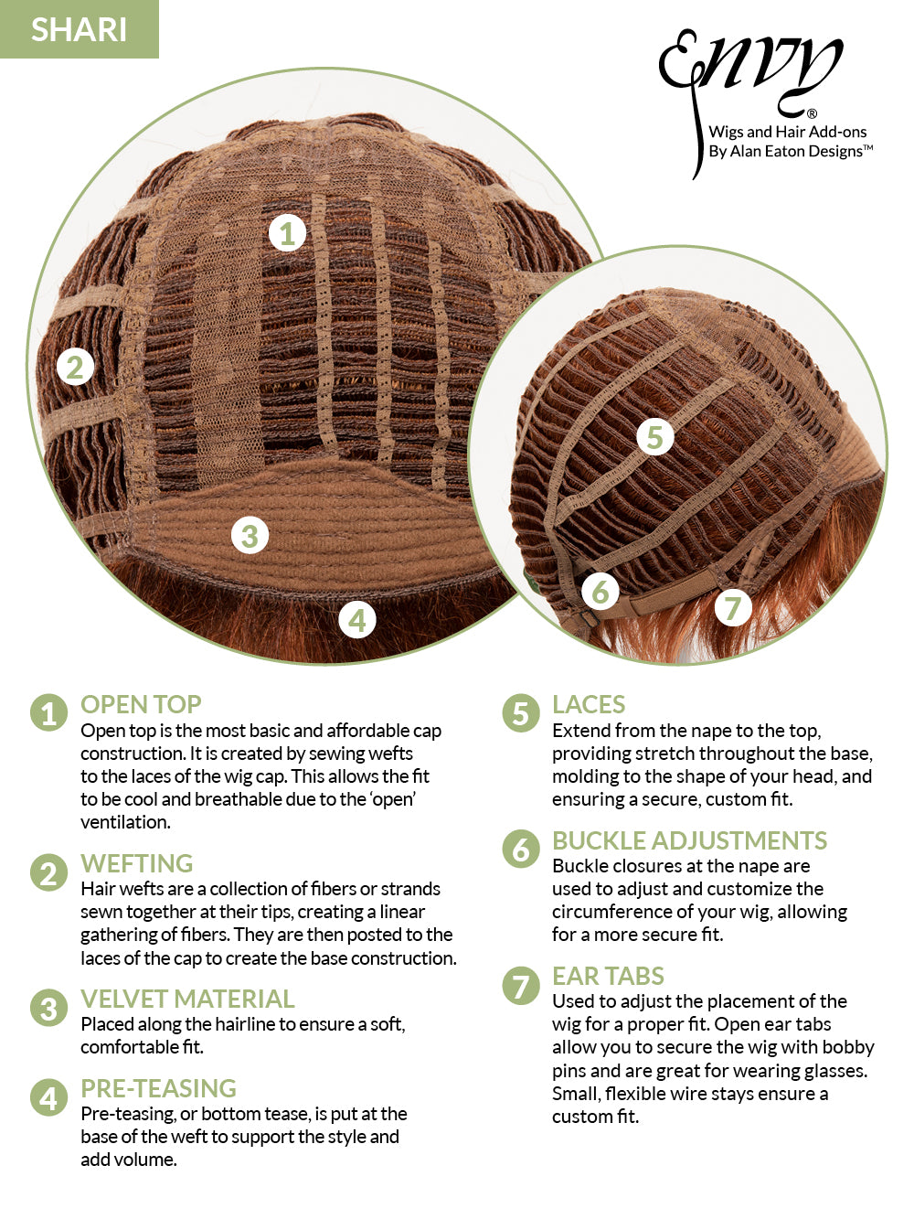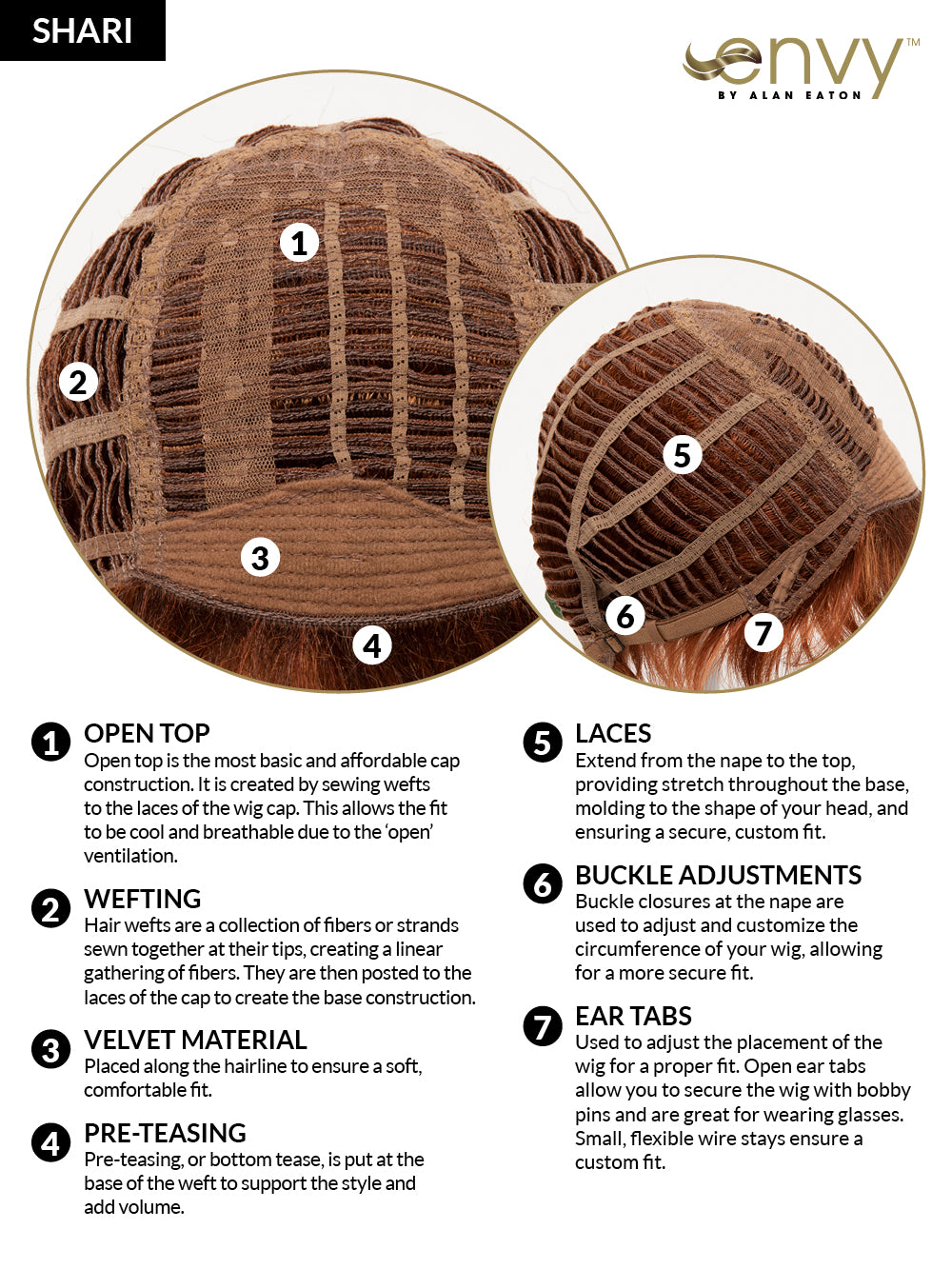 Shari by Envy is made in our capless Open Top construction. For the most breathable and lightweight construction available it is our Open Top Collection. Shari is trendy chic with its long side swept bangs. The style can be pumped for more volume or worn more sleek and close to the head. Shari is now available in our Average Cap size for those looking for additional freedom of fit. Shari is available in 25 vibrant multi-dimensional colorations to fit the trends of today.