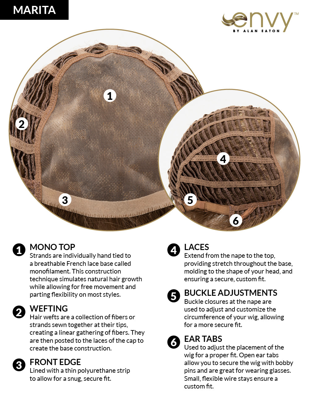 Marita by Envy is bold, texturized styling at its finest. Feathered layers give this wig a voluminous look that can be styled sleek or spiky, depending on the mood and occasion. The Mono Top construction is designed to imitate your natural scalp, offering the most realistic appearance available.