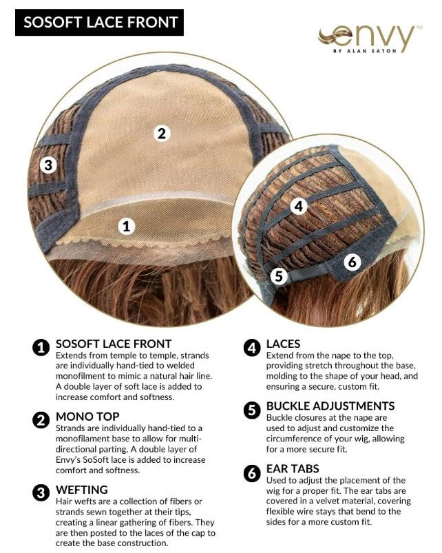 - Cap Construction: SoSoft with Lace Front/Monofilament Top