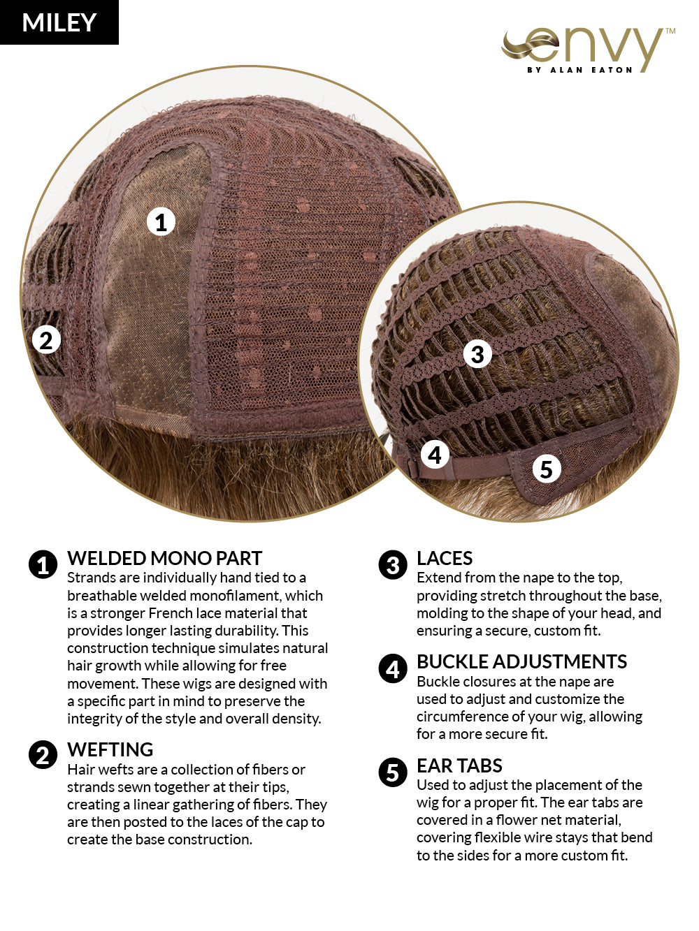 Miley by Envy offers a mono part construction for the most natural in realistic styling. This edgy-glam look takes choppy layering and an asymmetrical front to new heights. Fashion forward, chic and cutting edge comes to mind with this fascinating short style. Rough it up with styling products for a harder edge or style sleek for tailored perfection. Miley is available in 25 vibrant multi-dimensional colorations that are perfect for women of all ages.