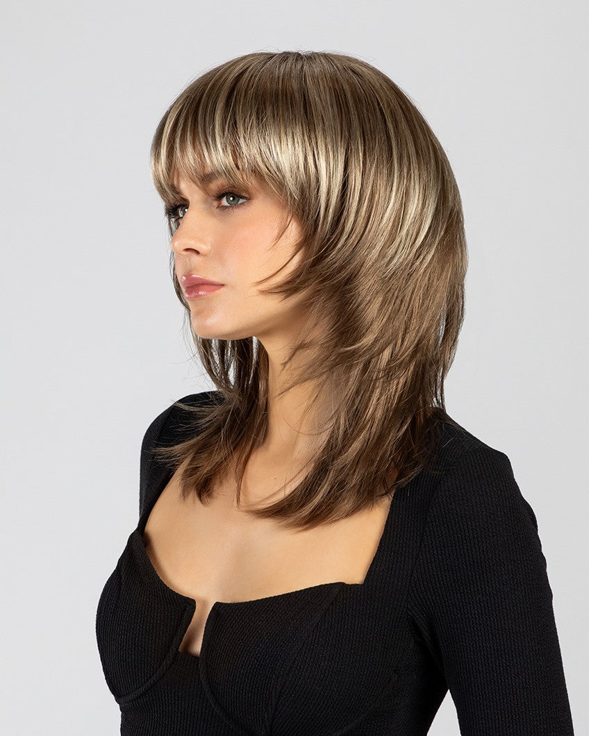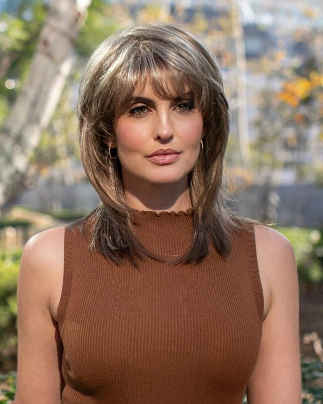 Miranda is a mid-length shag wig with layers for added texture and volume, creating a soft body. This wavy style is incredibly flattering. An open cap design offers full coverage while feeling light and cool. The cap molds to your head shape, ensuring this shoulder-length wig fits perfectly.