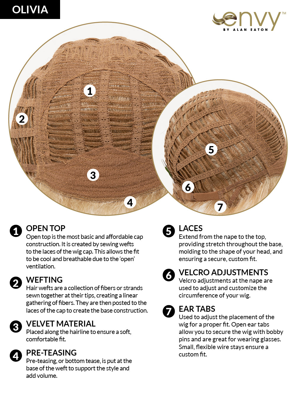 There's nothing not to love about Olivia's masterfully spiked layers. Texture rules the day with this modern play on the classic nape-hugging pixie. Your scalp will enjoy the gossamer lightness of the capless construction, while the versatility of our heat-friendly Envyhair blend will appeal to your creative side. Heat set, curl, or straighten to make Olivia all your own!