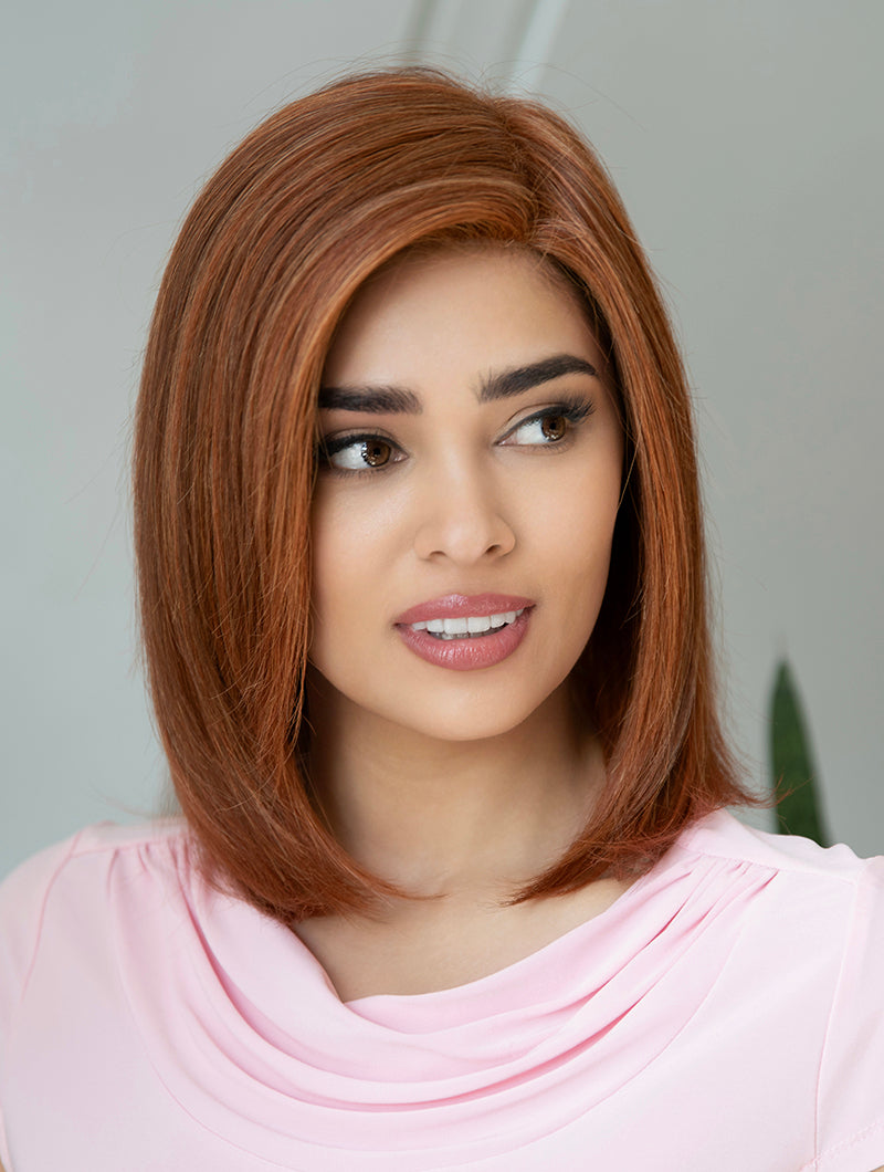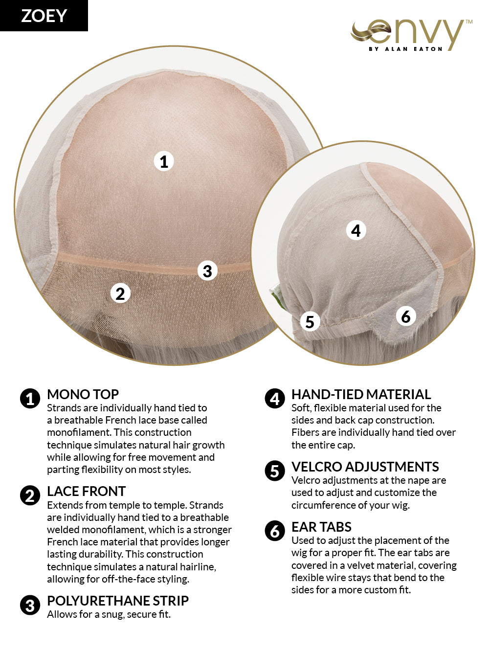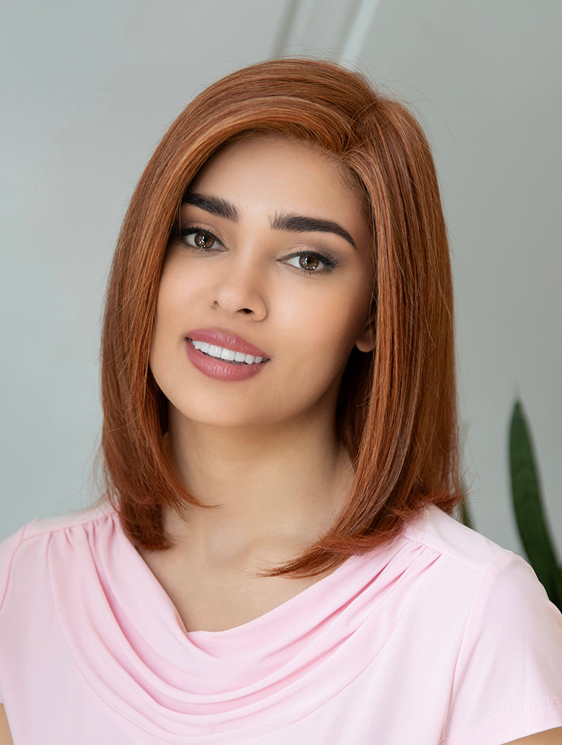 Nothing says class like Zoey's side-swept, shoulder-length locks. Her Mono Top construction, with hand tied sides and back, make for one of the most realistic appearances on the market, and our exclusive Envyhair blend 30% human hair and 70% heat-friendly fiber mean you can curl, straighten, and blow dry this wig just like your natural hair!