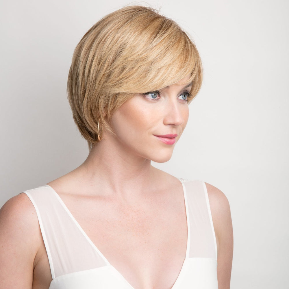 Angel from the Fair Fashion Collection is a short-length Human Hair wig. This straight wig is a layered, young cut for a modern look. Light and extremely natural looking. Angel comes in a Basic Cap with Monofilament top. Basic Cap is handcrafted cap with a monofilament top section which gives the appearance that the hair is actually growing from the scalp and which allows an excellent ventilation.