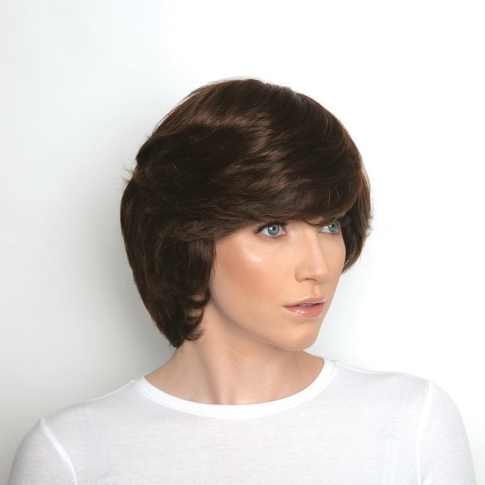 Sophie from the Fair Fashion Collection is a short-length Human Hair wig. This straight wig is a classic line and a slight fringe that offers a touch of class. Sophie comes in a Comfort Cap with Monofilament top. The Comfort Cap is extremely light weight and entirely hand-tied.