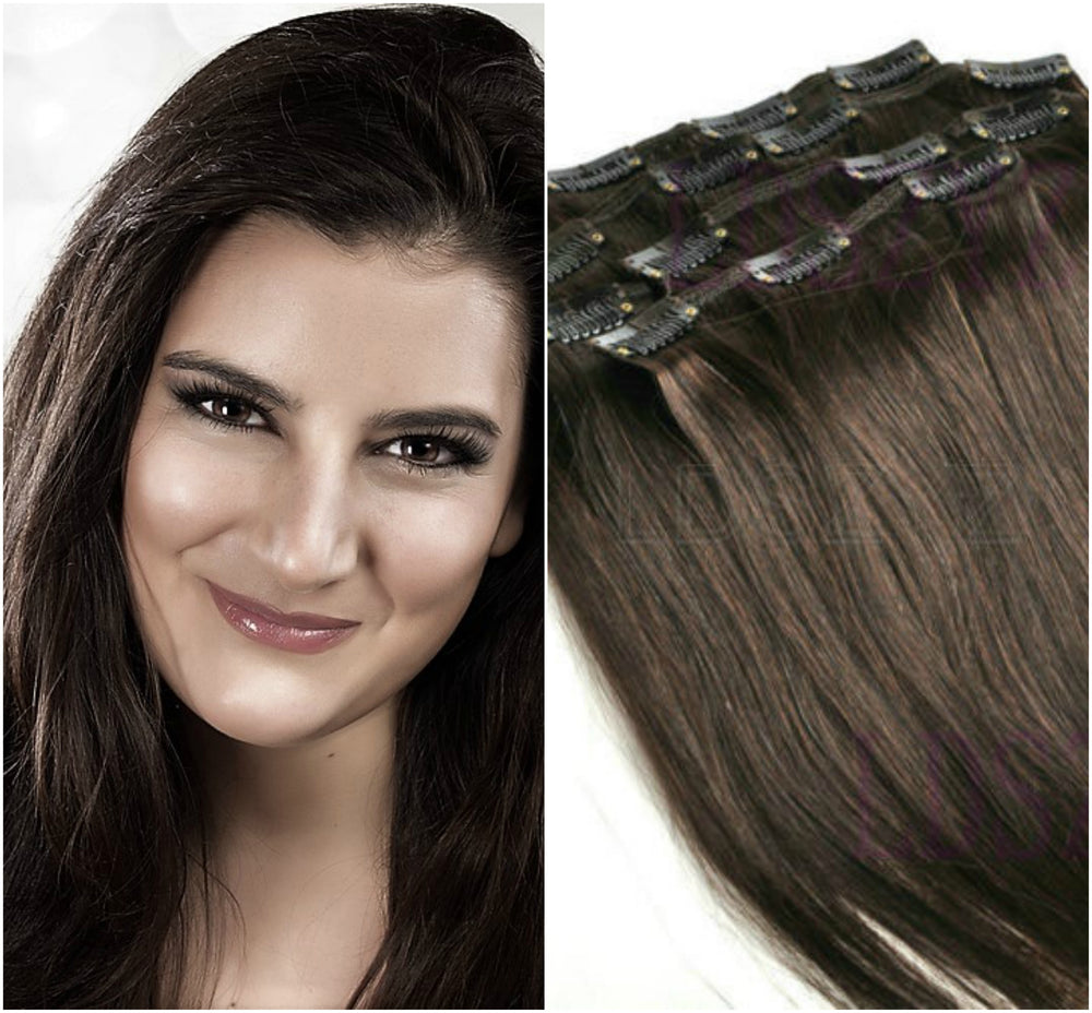 Clip In 100% High Quality REMY HUMAN HAIR Extensions Dark Brown Color #2