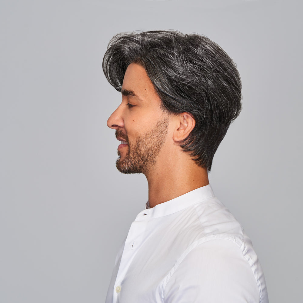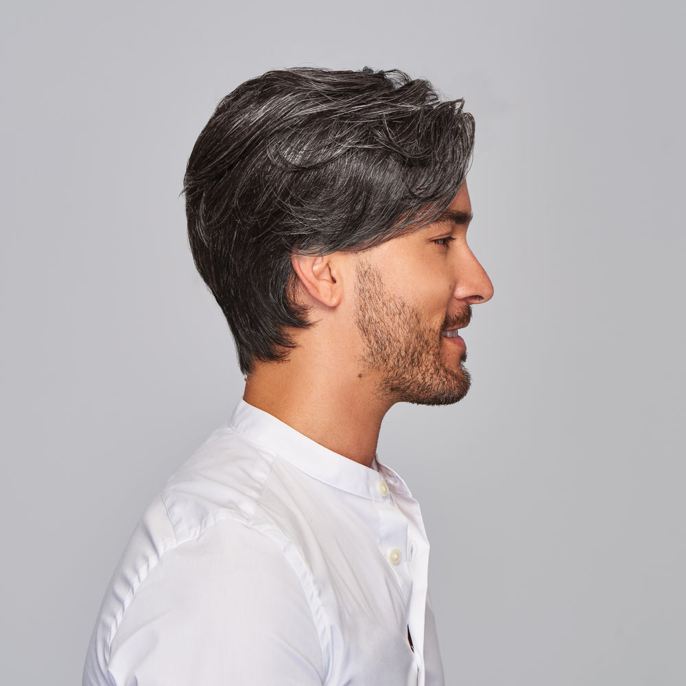 The touchable light wave texture throughout this dashing, low-density style has all the best moves thanks to a completely hand-tied construction. Customization options let HIM make a bold fashion statement or keep his look quietly classic. The lace front hairline is specially designed to look remarkably realistic and clinch that important first impression.