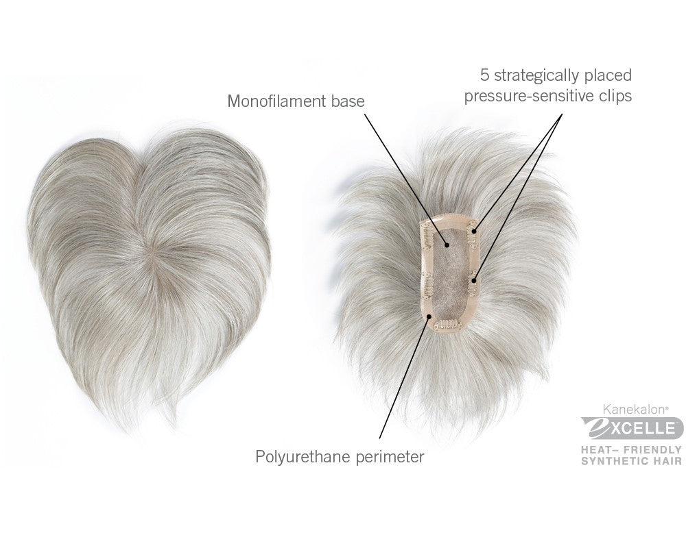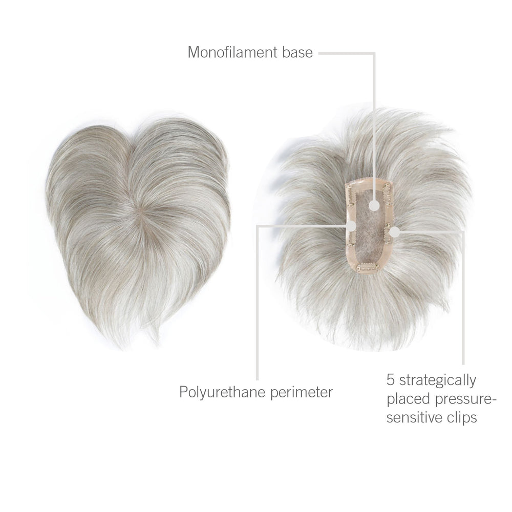 IN FULL EFFECT is the perfect men’s accessory to help fill in or conceal areas of sparseness at the top of the head. The narrow, hand-tied monofilament base attaches with five pressure-sensitive clips to allow for placement anywhere a little fill or fullness is desired. This versatile piece is a Hollywood “trick of the trade” and can be worn as is with longer hair lengths or cut down to blend seamlessly into shorter styles.