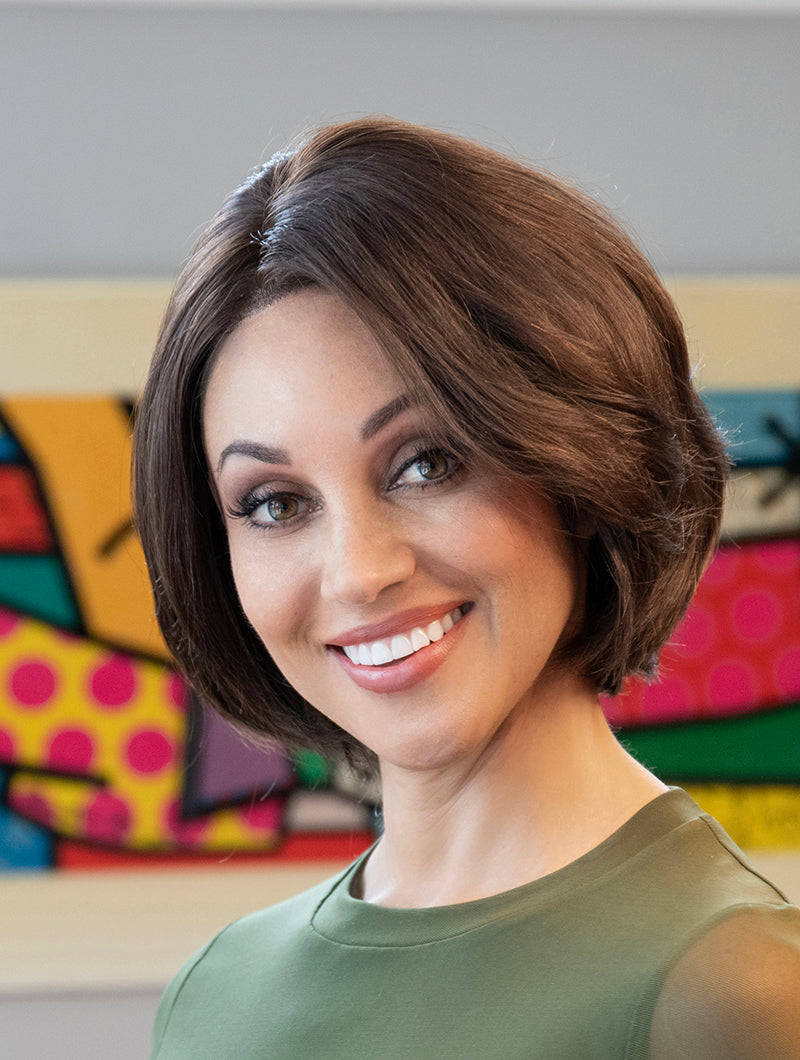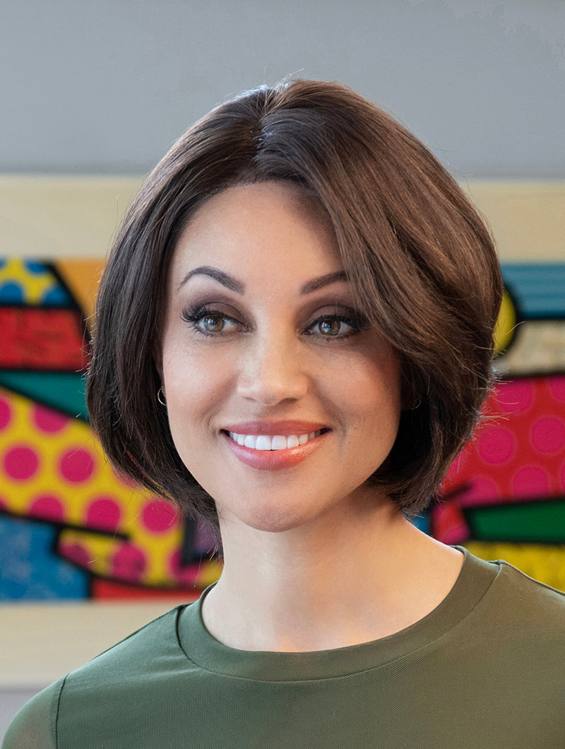 Amelia by Envy is made of 100% human hair and is completely hand tied with a mono top and lace front construction. Ameilia has been designed to create a smart, sleek jaw length stunning bob. Slight layering adorn the face and nape to offer a sculpted silhouette. Amelia is available in 9 vibrant multi-dimensional colorations. The cap construction is made with built-in poly tabs and strips so that the cap can be secured for better security and a more confident fit.