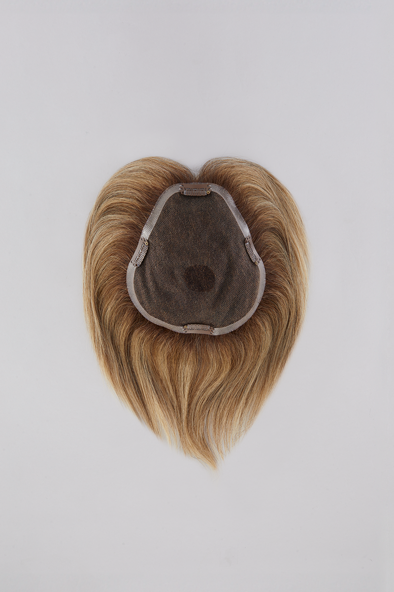 Kick it up a notch with this one-piece volumizer, which adds instant thickness by clipping in over the part. Its naturally beautiful Remy human hair is styled easily with heat and blends in seamlessly. Constructed on a wider base than easiPart 8”, this topper provides extra coverage and volume for the beginning stage of hair loss.
