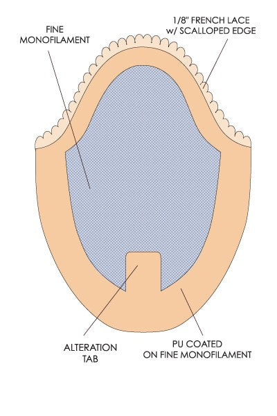 JJ is a 100% hand tied monofilament lace with polyurethane coated on monofilament perimeter. The polyurethane coated perimeter allows customization for your clients specifications. Being 100% hand tied on monofilament makes this a very lightweight piece and will allow the scalp to breathe easy.