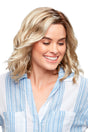Welcome the sunshine with the effortless beach waves of this asymmetrical style. This 100% hand tied wig features a SmartLace front and mono top for ultra natural multidirectional styling.