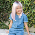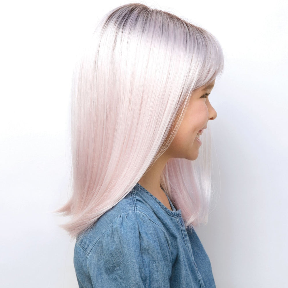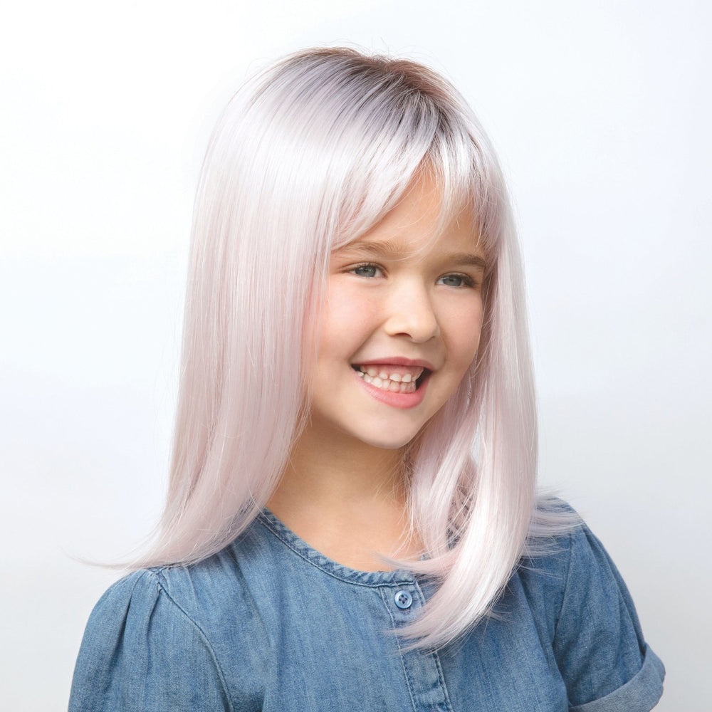 Miley from our Amore Children’s Collection is a long-length synthetic wig. This straight ready-to-wear wig is a soft side swept fringe and sweet shoulder length locks. Our children’s lace front with lace cap wigs are light weight, comfortable, wefted and with an invisible hairline for ultimate comfort. Miley cap includes lace front, with full monofilament top covered by soft material with elastic lace that allows cap to stretch for more flexibility.