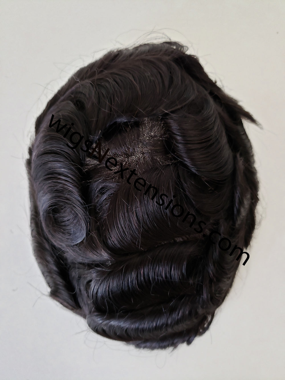 Toupees/Hairpiece, WNE-301, with 3 Clips, Mono in Center with Poly Coating around, 100 % High Quality Remy Human Hair for Men