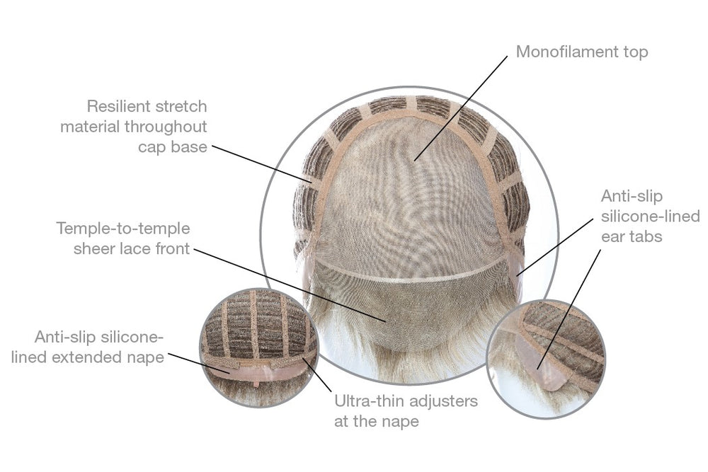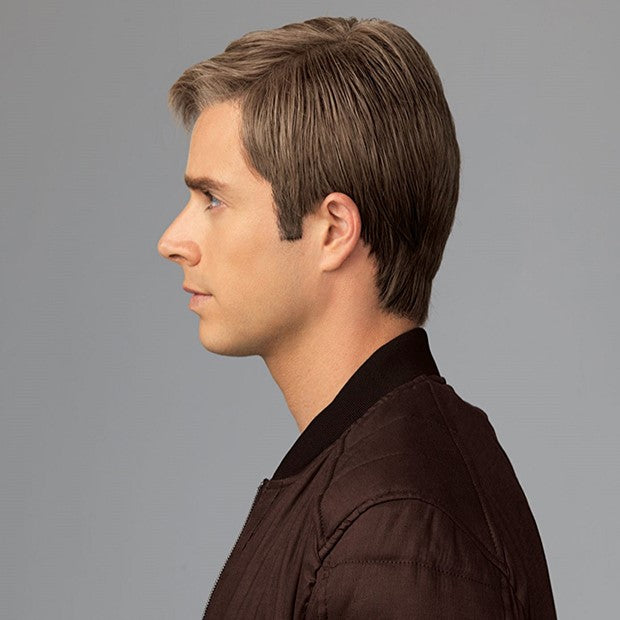Precisely cut layers take on the best shape in this shorter haircut. Style the hair to the side or off the face with confidence thanks to the exceptional lace front hairline. The monofilament top creates natural volume that can be sharply parted or worn undone with ease. Sculpt the shorter layers to fit his mood and attitude.