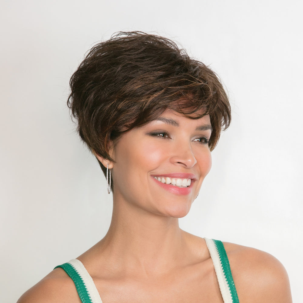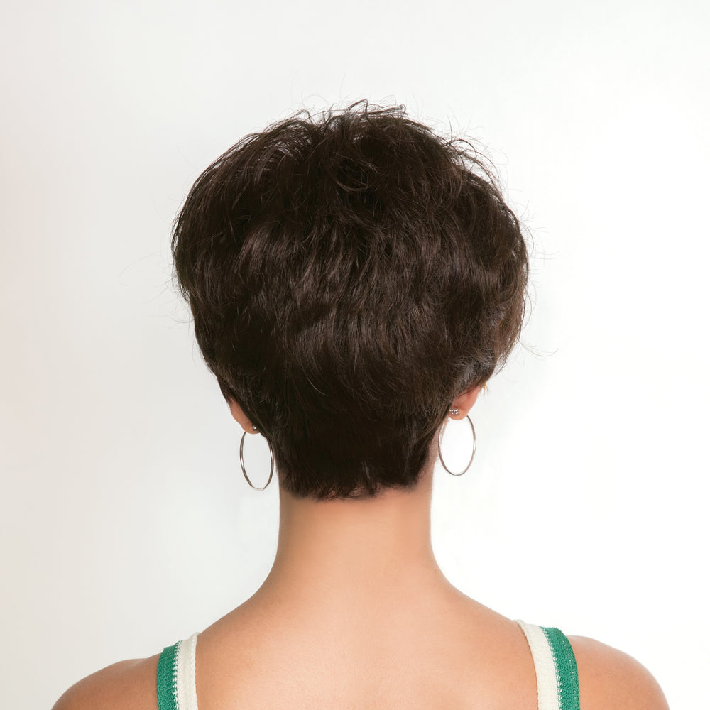 Emerson from our Noriko Collection is a short-length synthetic wig. This straight ready-to-wear wig is a bold unisex cut. This wig can be worn tousled for a rugged masculine look or styled into a soft feminine silhouette. Emerson is machine made with adjustable tabs in the back nape area to allow a more comfortable fit. The result is a comfortable fit with a natural look that is both fashionable and easy to wear.