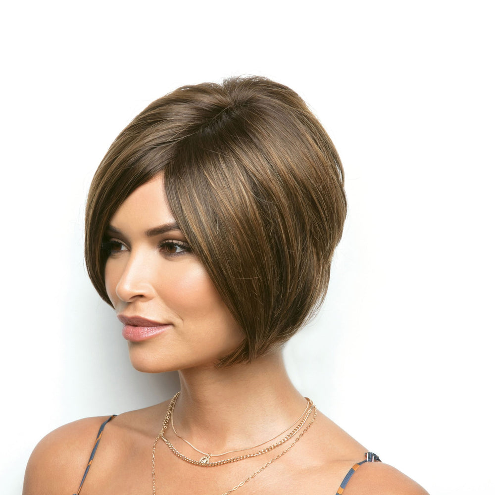 Emery from our Noriko Collection is a short-length synthetic wig. This straight ready-to-wear wig is a chin-length layered bob. Emery creates a modern yet classical look with a soft body and natural lift to flatter any face shape. Its lace front will give you a natural look with the lace part cap. Emery cap construction has adjustable tabs in the back nape area to allow a more comfortable fit. The result is a comfortable fit with a natural look that is both fashionable and easy to wear.