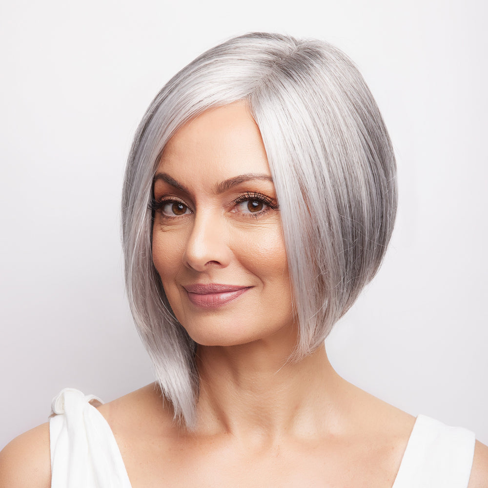 Faith from our Noriko Collection is a short-length synthetic wig. This straight ready-to-wear wig is a timeless asymmetrical bob with face-framing layers. This trendy wig is lace front and lace part. Its lace front will give you a natural look with the lace part cap. Faith cap construction has adjustable tabs in the back nape area to allow a more comfortable fit. The result is a comfortable fit with a natural look that is both fashionable and easy to wear.