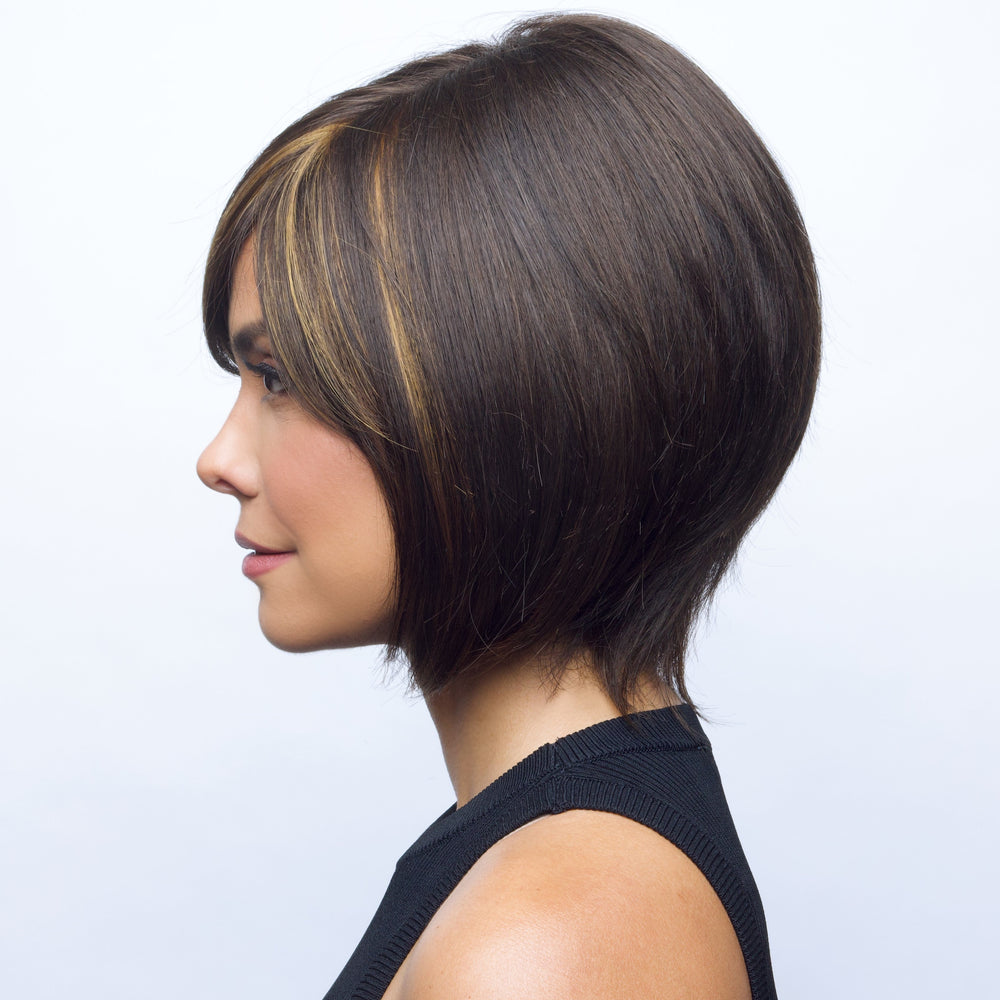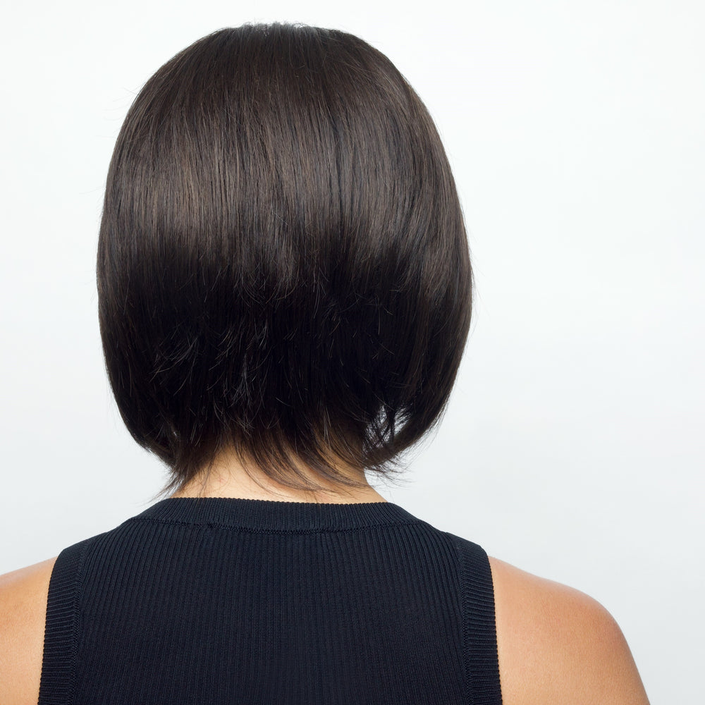 Jolie from our Noriko Collection is a short-length synthetic wig. This straight ready-to-wear wig is a perfectly layered modern bob. This sleek bob is a timeless refined hairstyle . Jolie is Monofilament top with adjustable tabs in the back nape area to allow a more comfortable fit. The Monofilament top gives you a light breathable base and a more realistic appearance to create a natural illusion which allows you to change the direction of the part on the wig. It provides the ultimate versatility and comfort.