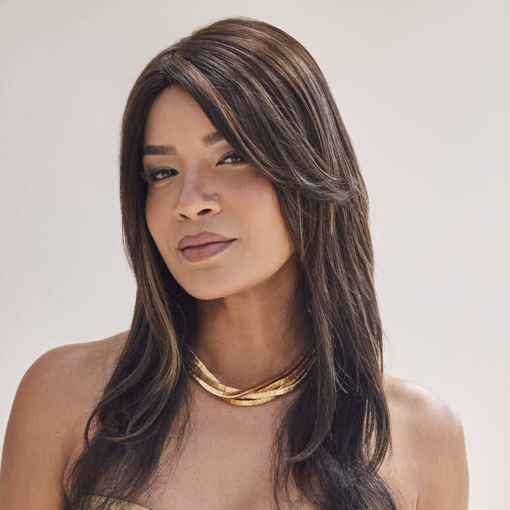 wMalibu from our Noriko Collection is a long-length synthetic hair enhancement. This straight ready-to-wear enhancer is long-layered with side swept fringe and naturally tapered ends blend well together. To achieve a glamorously stunning appeal and add smooth face framing layers to your natural hair this is the right enhancement for you. Malibu is Monofilament top with adjustable tabs in the back nape area to allow a more comfortable fit and includes 4 toupee clips. The Monofilament top gives you a light breathable base and a more realistic appearance to create a natural illusion which allows you to change the direction of the part on the wig. It provides the ultimate versatility and comfort.