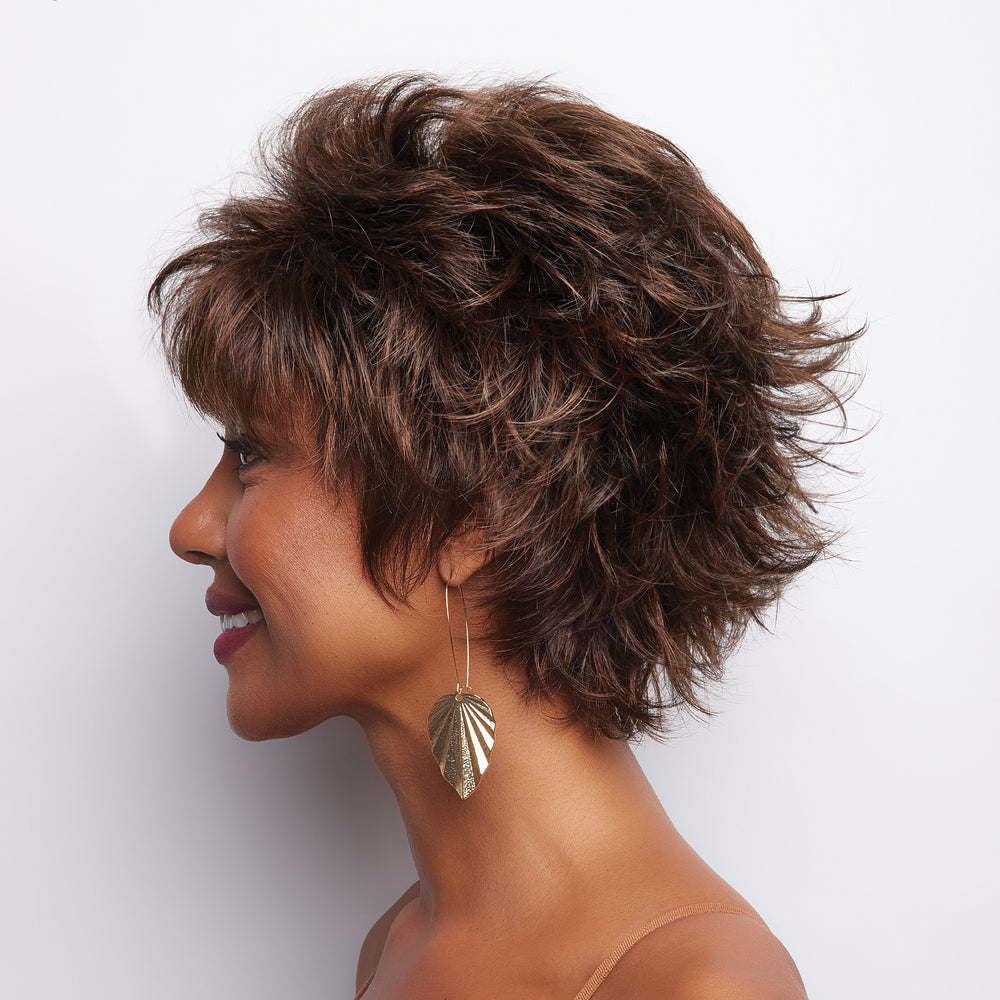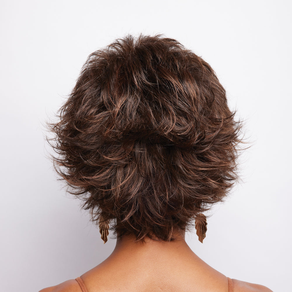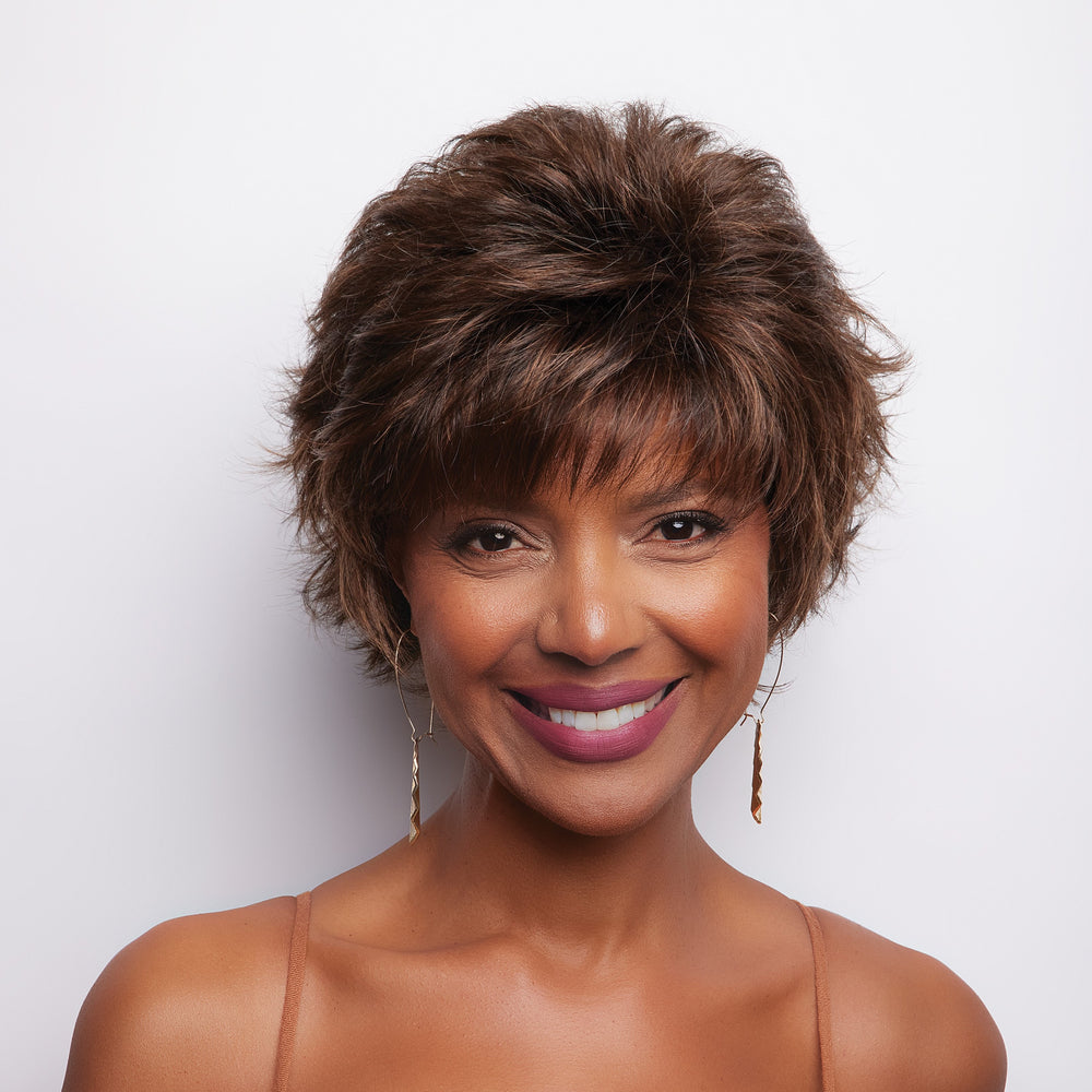 Mason from our Noriko Collection is a short-length synthetic wig. This straight ready-to-wear wig is mixed layers with beveled ends. Build attitude in this style with a sophisticated “kick”. The feathery bangs and layered side pieces curve towards the cheekbones and frame the face in a classy, dramatic fashion. It’s an upscale hairdo for an elegant woman to flaunt.Mason is machine made with adjustable tabs in the back nape area to allow a more comfortable fit. The result is a comfortable fit with a natural look that is both fashionable and easy to wear.