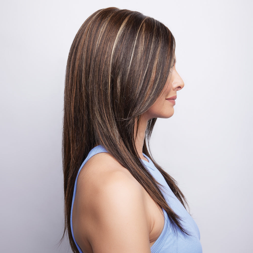 Shilo from our Noriko Collection is a long-length synthetic wig. This straight ready-to-wear wig features long soft layers to create great movement for a flirtatious look. Shilo is Monofilament top with adjustable tabs in the back nape area to allow a more comfortable fit. The Monofilament top gives you a light breathable base and a more realistic appearance to create a natural illusion which allows you to change the direction of the part on the wig. It provides the ultimate versatility and comfort.