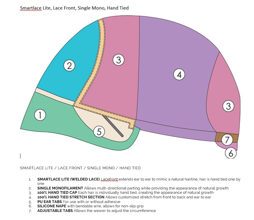 - Cap Design: Smartlace Lite, Lace Front, Single Mono, Hand Tied