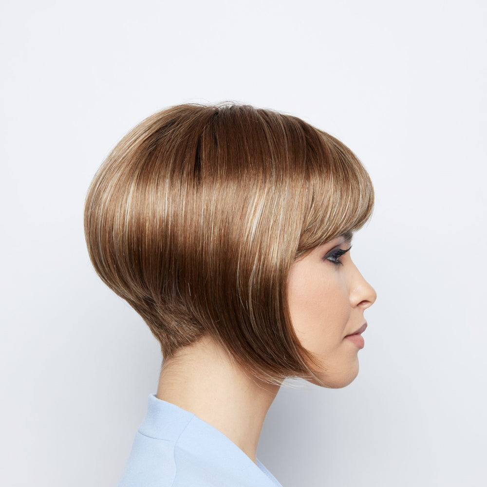 Angie from our Alexander Couture Collection is a medium-length synthetic wig. This straight ready-to-wear wig is a sleek A-Line cut with full fringe. Angie is machine made with adjustable tabs in the back nape area to allow a more comfortable fit. The result is a comfortable fit with a natural look that is both fashionable and easy to wear.