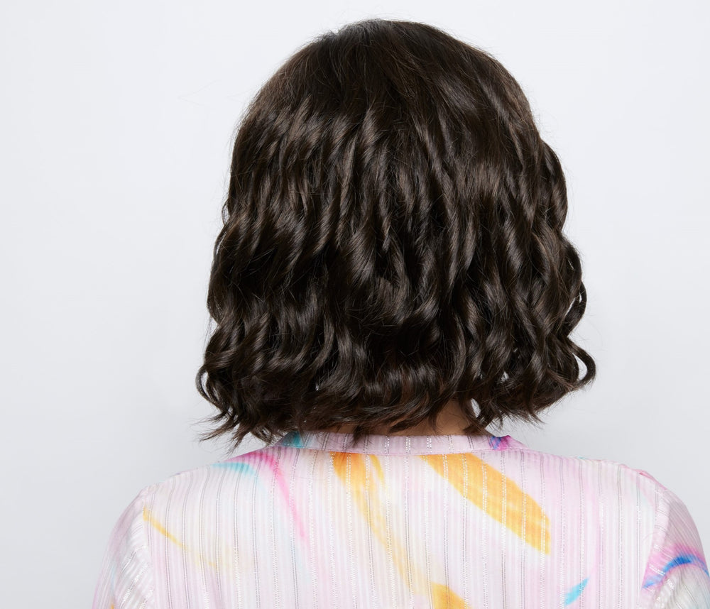 Julie from our Alexander Couture Collection is a medium-length synthetic wig. This wavy ready-to-wear wig is a playful bob with spiral curls all around. This trendy wig is lace front and lace part. Its lace front will give you a natural look with the lace part cap. Julie cap construction has adjustable tabs in the back nape area to allow a more comfortable fit. The result is a comfortable fit with a natural look that is both fashionable and easy to wear.