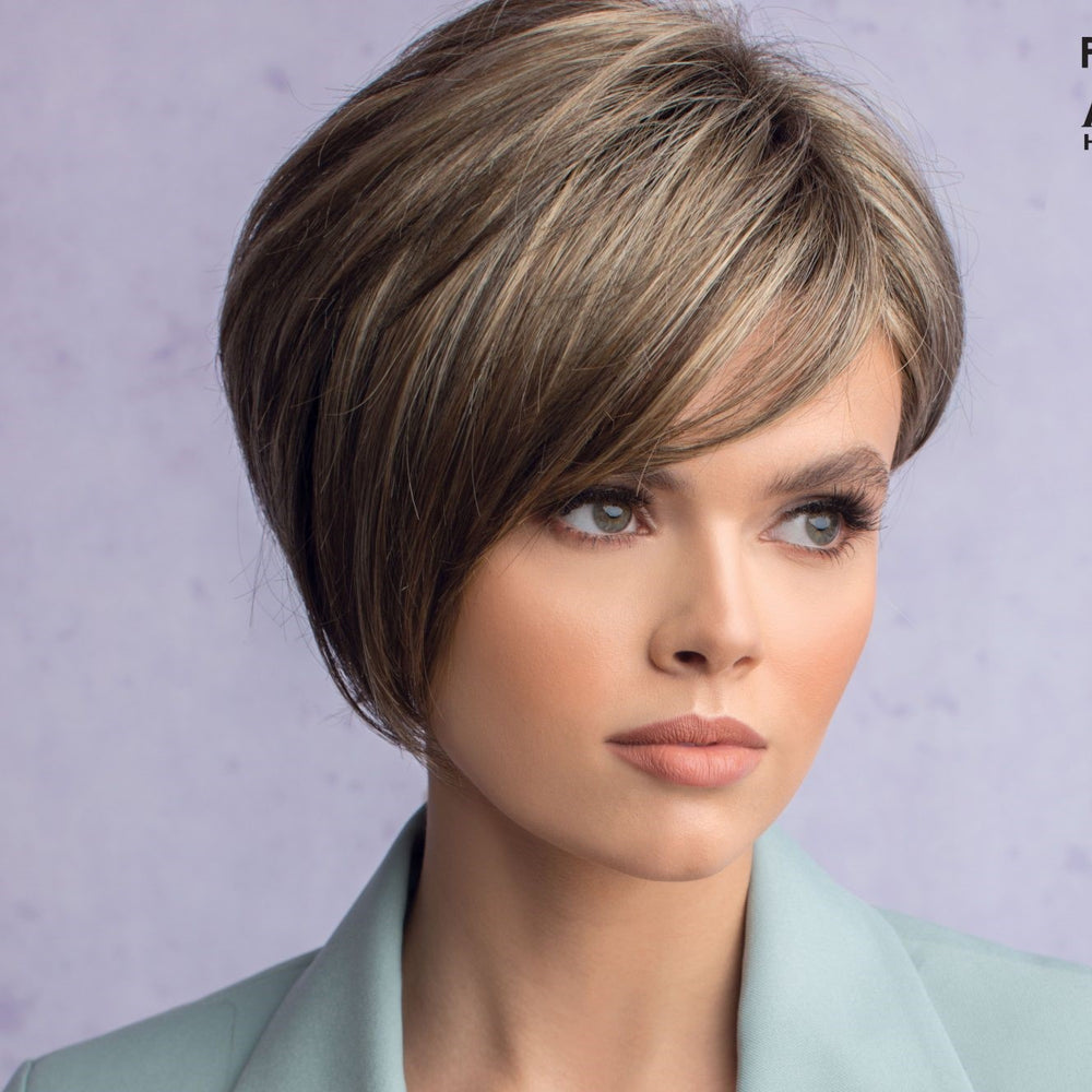 Susanne from our Alexander Couture Collection is a short-length synthetic wig. This straight ready-to-wear wig is a classic cut with short layers featuring side swept fringe and tapered nape. Susanne is machine made with adjustable tabs in the back nape area to allow a more comfortable fit. The result is a comfortable fit with a natural look that is both fashionable and easy to wear.