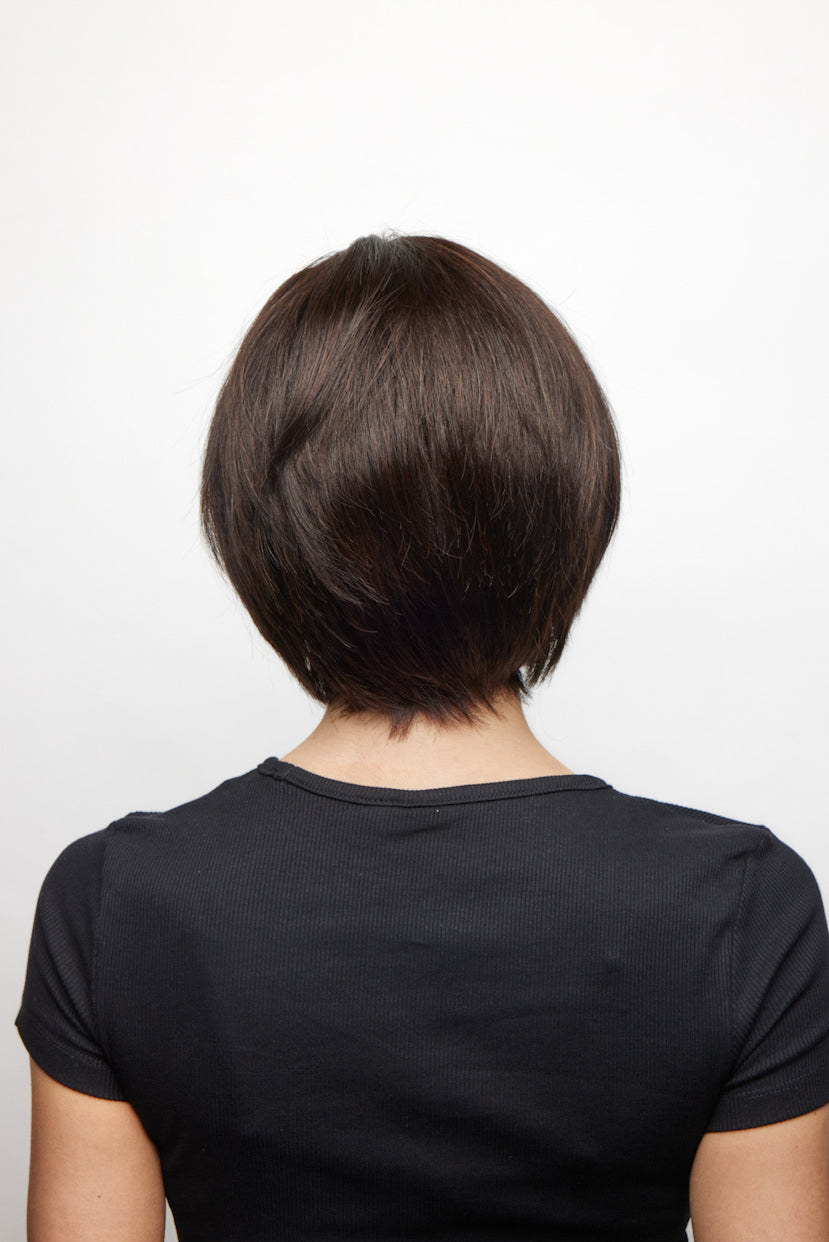 Alina from The Orchid Collection is a short-length human hair wig. This straight wig is a salon inspired choppy bob. Alina is one of a kind and a must have wig. Alina’s cap construction is unique and has many features. This style is a Handtied, Monofilament, Lace front, with soft net, and PU ear tabs (ear to ear lace). It provides the ultimate versatility and comfort.