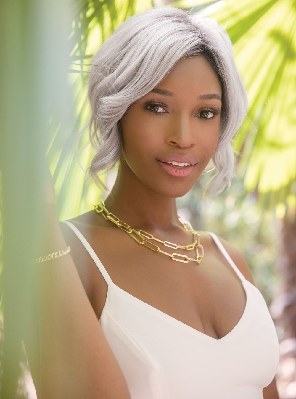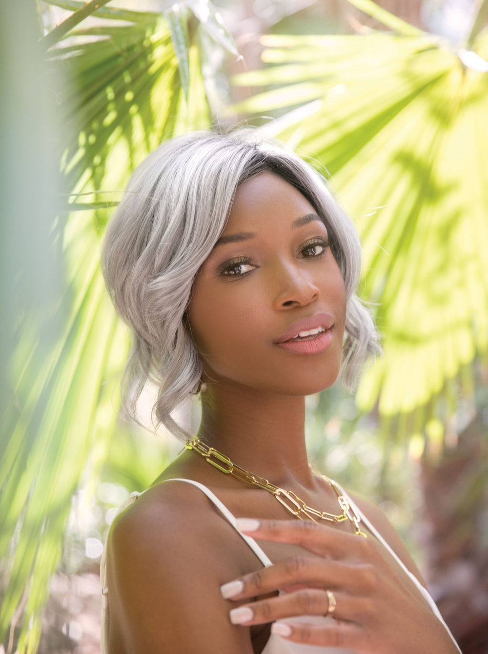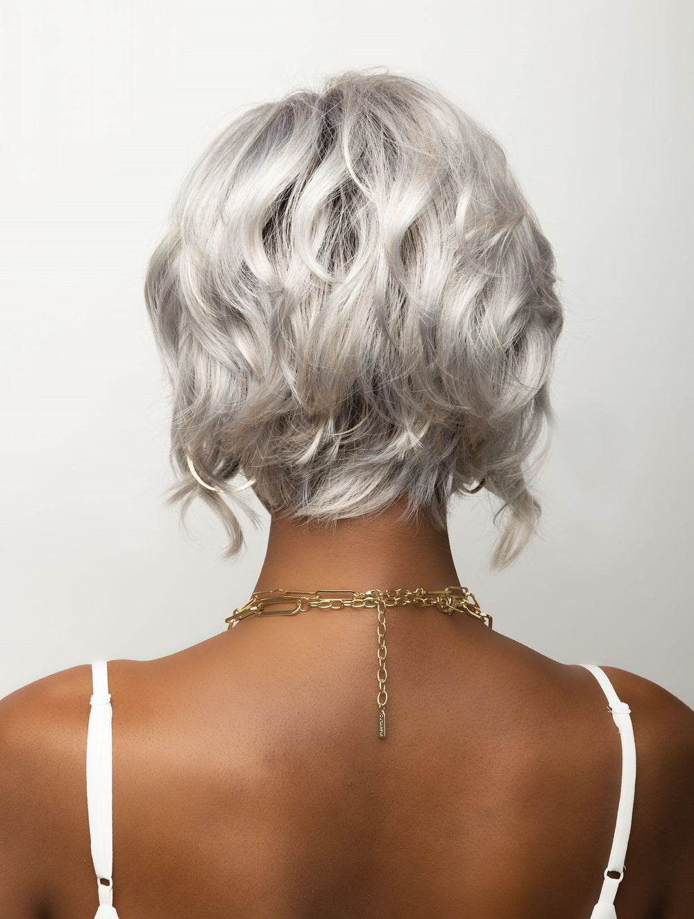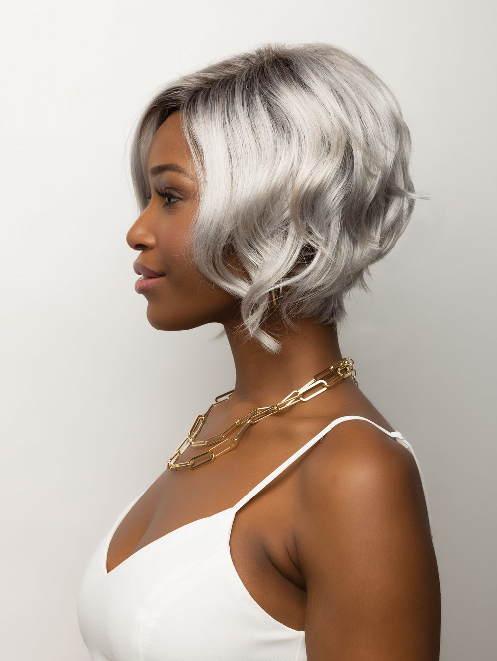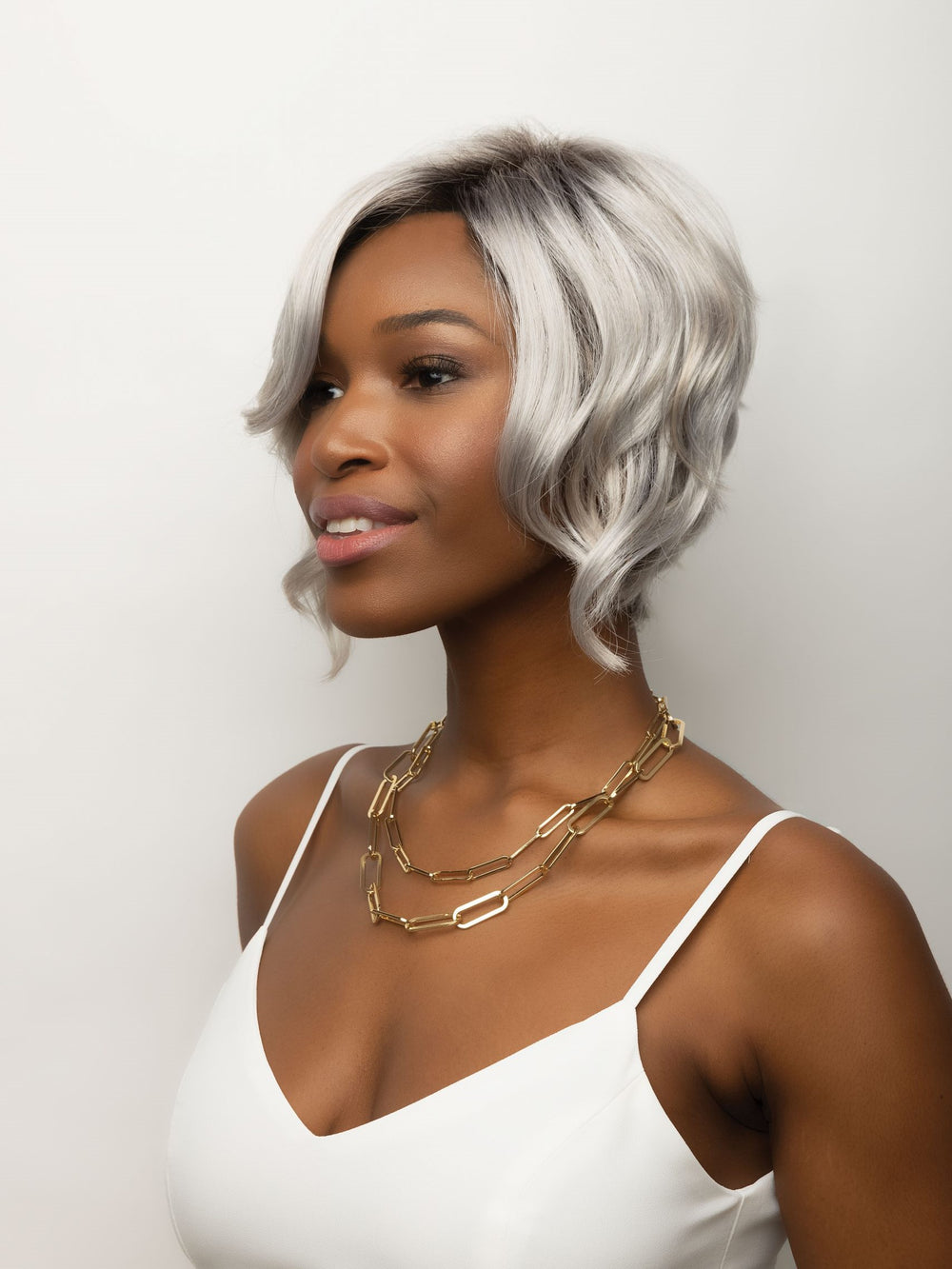 Hallie from The Orchid Collection is a medium-length synthetic wig. This wavy ready-to-wear wig is a mid length wavy bob with middle part with layers that reach the chin line to give you a beachy look. Hallie cap construction is lace front for a more natural look with flower net top and elastic bands which allows the cap to stretch for more flexibility. The result is a comfortable fit with a natural look that is both fashionable and easy to wear.