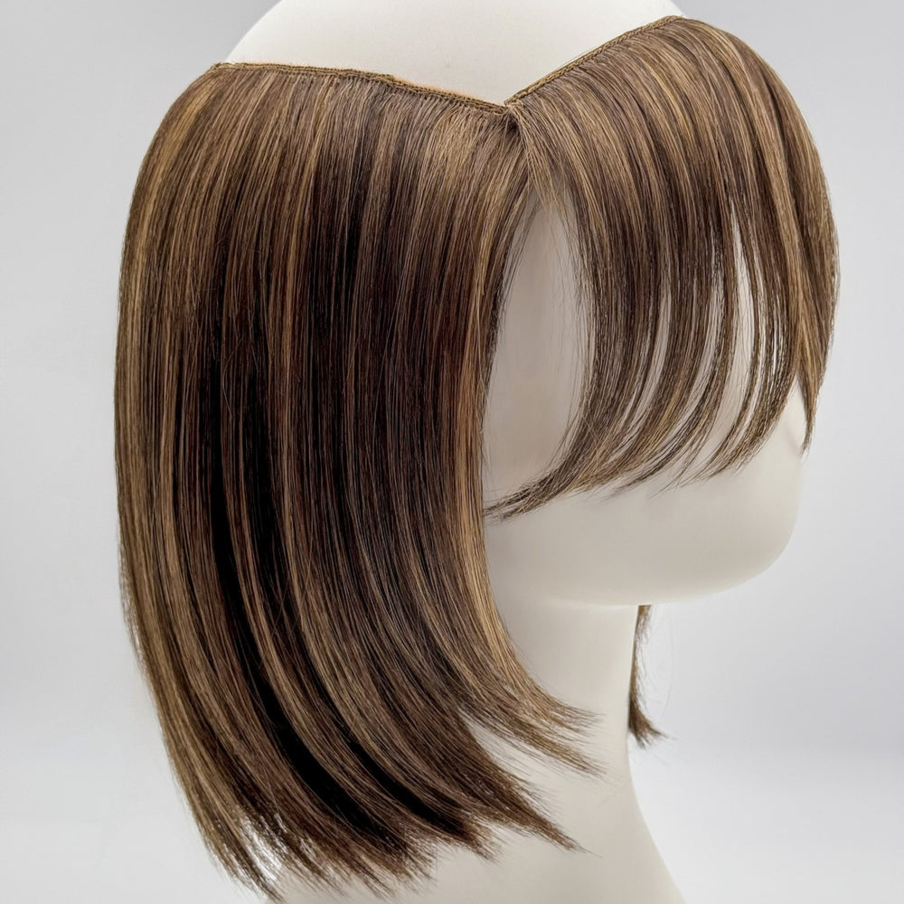 Halo Bob Top Piece from our Rene of Paris Hi-Fashion Collection is a medium length synthetic hair topper. This straight hair enhancer is a refreshingly original halo hair piece complete with chin length layers and a detachable fringe. It can be worn under a hat or turban to compliment any outfit. The Halo Bob is machine made and is worn from the crown to the nape. The result is a comfortable fit with a natural look that is both fashionable and easy to wear.
