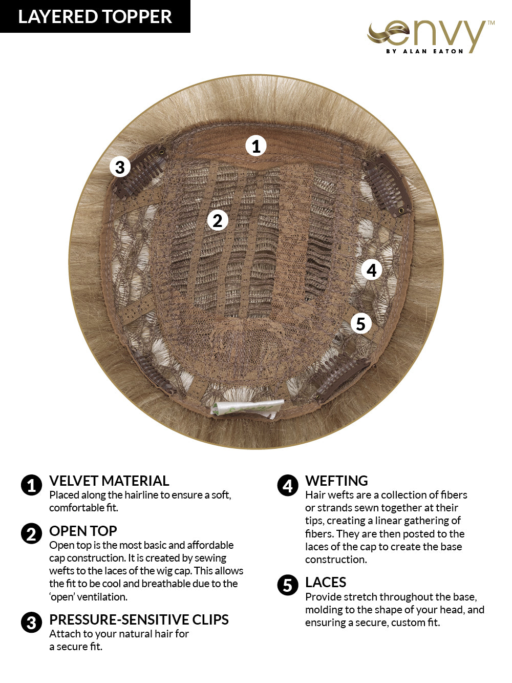 Like ENVY’s layered wig styles, our Layered Topper offers the kind of movement that makes you want to get up and glow places. (And it’s an especially flattering choice for older women.) Featuring our Open Top construction for supremely natural movement —and available in 15 multi-dimensional shades—our Layered Topper adds lush volume and coverage where extensions can’t reach.