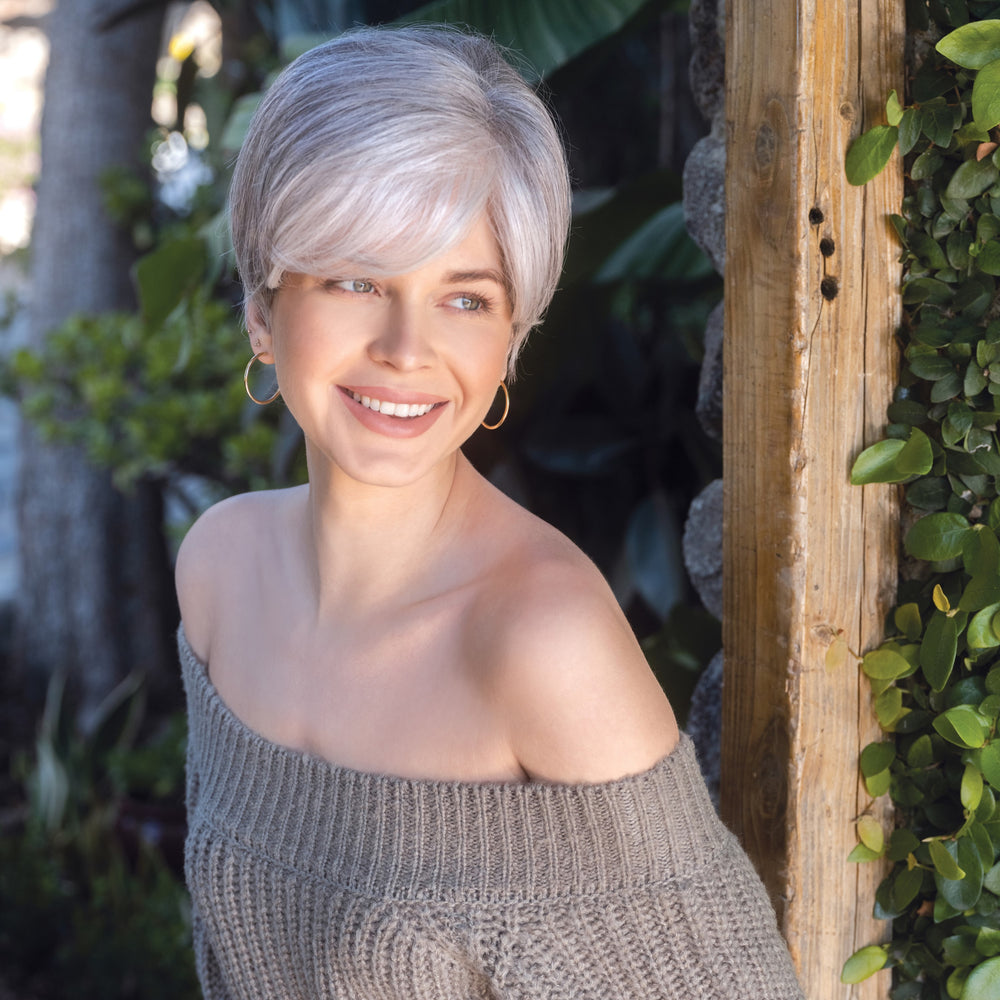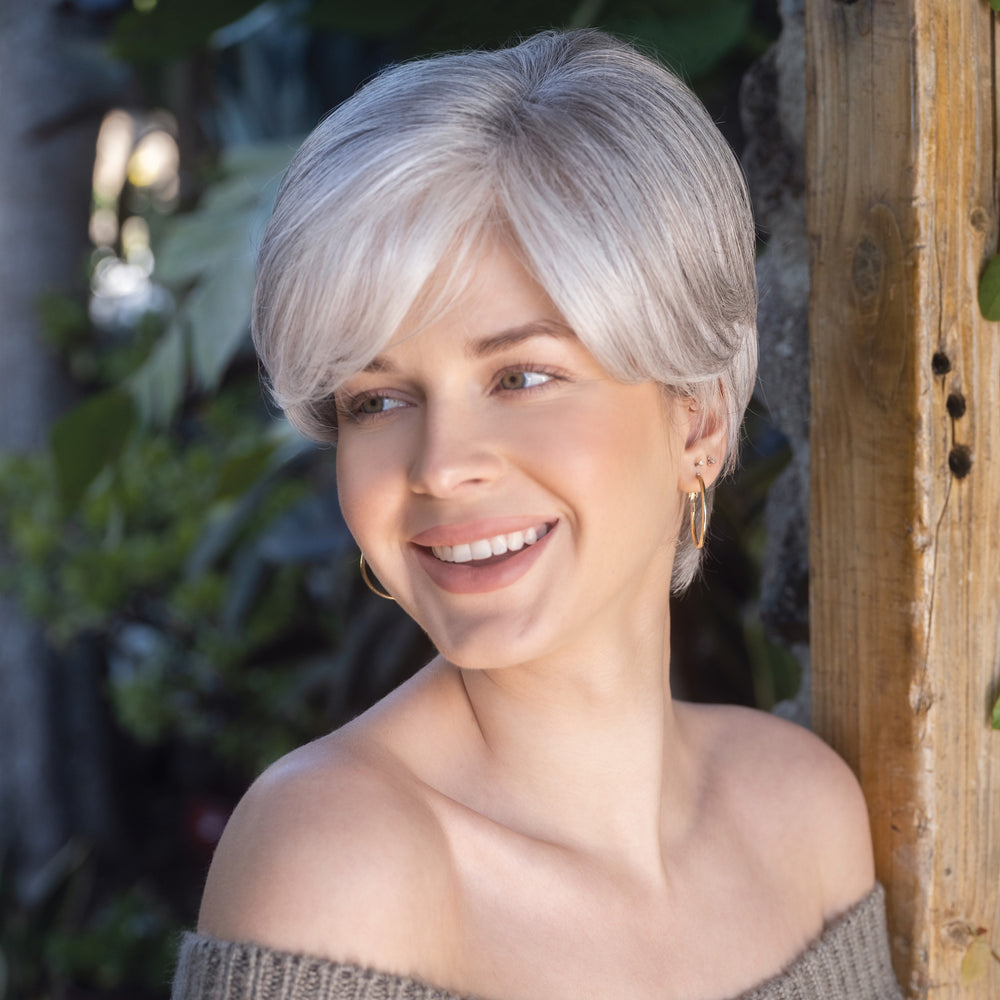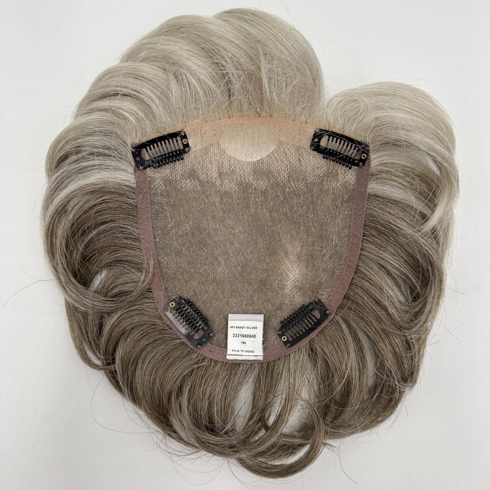Pixie TP Mono from our Amore Collection is 50% synthetic and 50% high heat hair piece. This straight hair enhancer is a super lightweight short, layered topper. This topper is a must have with the new Natural Movement fiber. It creates volume (high heat fiber) and soft feel (regular fiber) to avoid having static. It’s also less shiny than 100% high heat fiber. This natural movement fiber avoids coldest and keeps curl longer. It’s beautifully soft and yet reliable textured with high quality monofilament base with 4 sturdy clips providing maximum comfort and security. This topper is a must buy with our new mix fiber of synthetic and high heat.