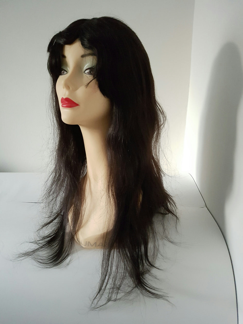 This type of wig is most easy to wear.Our Silk top wig is just like a cap with no lace, stretchy net perfectly fits on any head, it comes with bangs, Details are shown in Pictures . No need to go to salon for bonding like weavon or full lace, front lace. Feel relax and free on removal while sleeping. Not need to put acetone for removal, It has back strap for security. Textures will be perfect and permanent. The cloth used inside is comfortable and are designed in a way, it gives natural look.